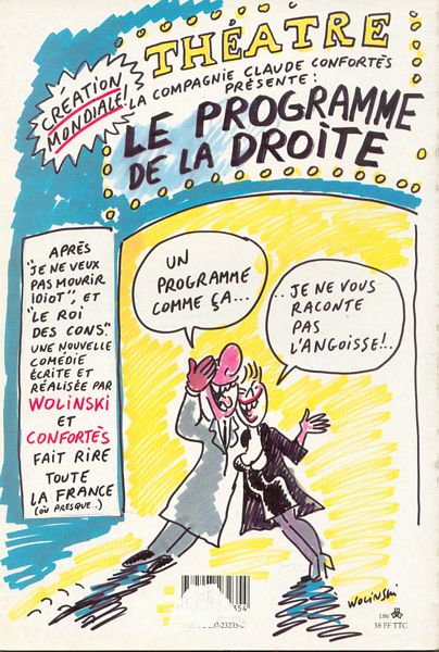 Programme de la droite (Le) est un album oneshot de Georges Wolinski, paru en 1986. Selon nos informations, il n'en existe qu'une seule édition, publiée par Denoël.