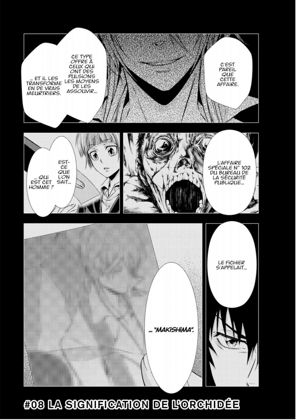 Les corps qiui ont été retrouvés exposés dans une mise en scène macabre, sont ceux d’élèves de l’école d’Ôsô. Les ressemblances entre cette affaire et celle dite du « taxidermiste », au cours de laquelle Kôgami a perdu l’un de ses hommes, poussent l’inspecteur Ginoza à l’écarter de l’enquête. Mais avec l’aide d’Akane, il poursuit ses investigation en sous-marin et s’apprête à découvrir qui est le cerveau derrière tous ces meurtres.
