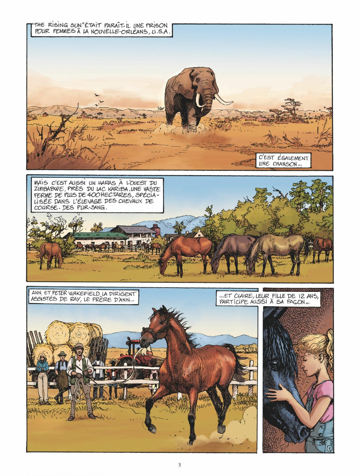 La passion du cheval est une affaire de famille À l’ouest du Zimbabwe, près du lac Kariba, s’étend une ferme de plus de 400 hectares spécialisée dans l’élevage de pur-sang. Ann et John Wakefield la dirigent, assistés de Ray, le frère d’Ann. Et pour leur fille Claire, 12 ans, c’est une matinée particulière puisqu’une pouliche est née dans la nuit ! Très vite, une véritable complicité naît entre la jeune fille et le poulain, baptisé Red Bird. Mais alors que le pays vit de grandes tensions à l’approche de l’élection du président Mugabe, Claire, elle, n’a qu’un objectif en tête : faire de Red Bird une future championne des champs de course. Mais son parcours sera semée d’embûches, elle a encore beaucoup à apprendre sur l’élevage équin.Avec l’appui de Camille Vercken, éleveuse de pur-sang, Rodolphe et Michel Faure (sans doute le meilleur dessinateur de chevaux de la bande dessinée contemporaine) lancent une nouvelle série placée sous le signe du sport équestre. Entre saga familiale et parcours initiatique, les auteurs nous font chevaucher dans ce premier tome au coeur des terres sauvages de l’Afrique australe, sur fond de troubles politiques...