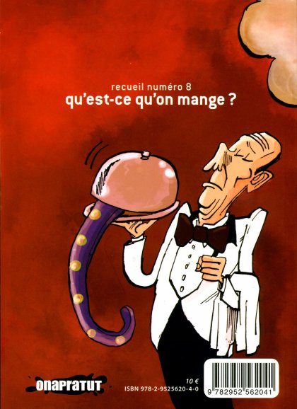 Ketchup ou sauce blanche ? Salade verte bio ou big mac ogm ? Grande cuisine distinguée ou pizza d’en face ? Main gauche ou main droite ? Une trentaine d’auteurs inventent leur menu pas toujours idéal, pour dresser le portrait de nos repas contemporains. Après Dieu, le Président, et la Peur, une fois de plus un thème dans l’actualité : n’avons-nous jamais autant parlé de malbouffe, de régime, de scandales alimentaires ? Des auteurs reconnus : Gally (Prix du public au festival d’Angoulême 2009 pour Mon gras et moi chez Diantre), Tibo Soulcié (Marine à Babylone, l’Echo des Savanes), raphaëlB (Ma vie de zombie, Ankama), Samos (collaborateur régulier au magazine Psikopat). Des auteurs en devenir : Elric, Unter, Alejandro Milà, Wouzit, Blonde, Adrien Fournier, Aude Massot, Pochep, Paul, Wayne.