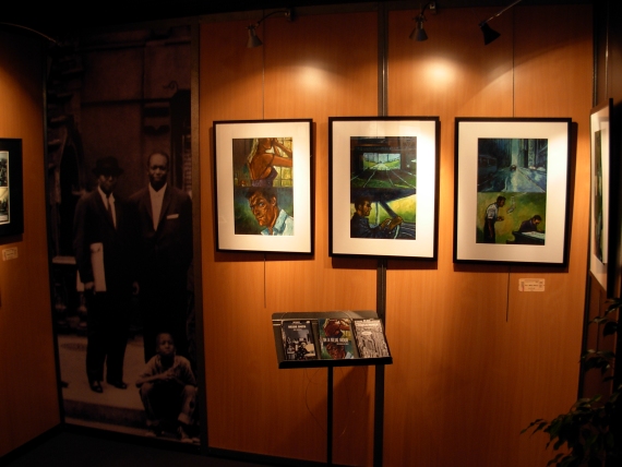 Ambiance jazz et blues pour cette exposition sur les éditions Nocturne, qui se sont spécialisées dans ces albums mêlant bande dessinée et morceaux musicaux.