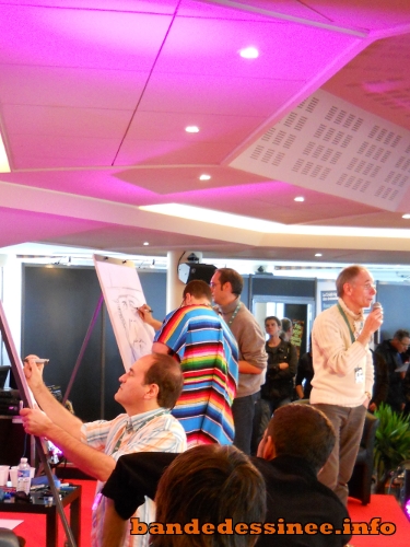 (11) Maester, en grand maître caricaturiste, s’est plié au jeu des dessins en direct