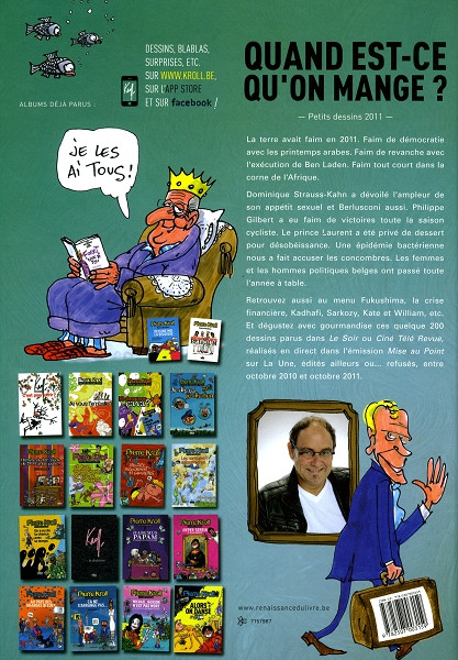 Quand est-ce qu’on mange ? est un album oneshot de Pierre Kroll, paru en 2011. Selon nos informations, il n'en existe qu'une seule édition, publiée par Renaissance du Livre.