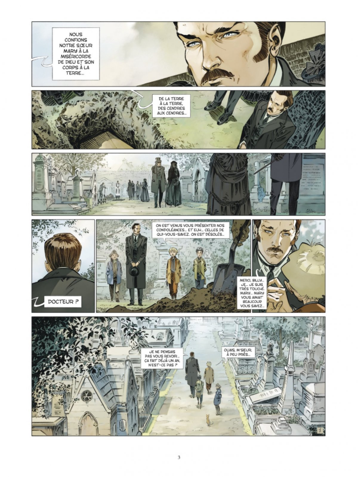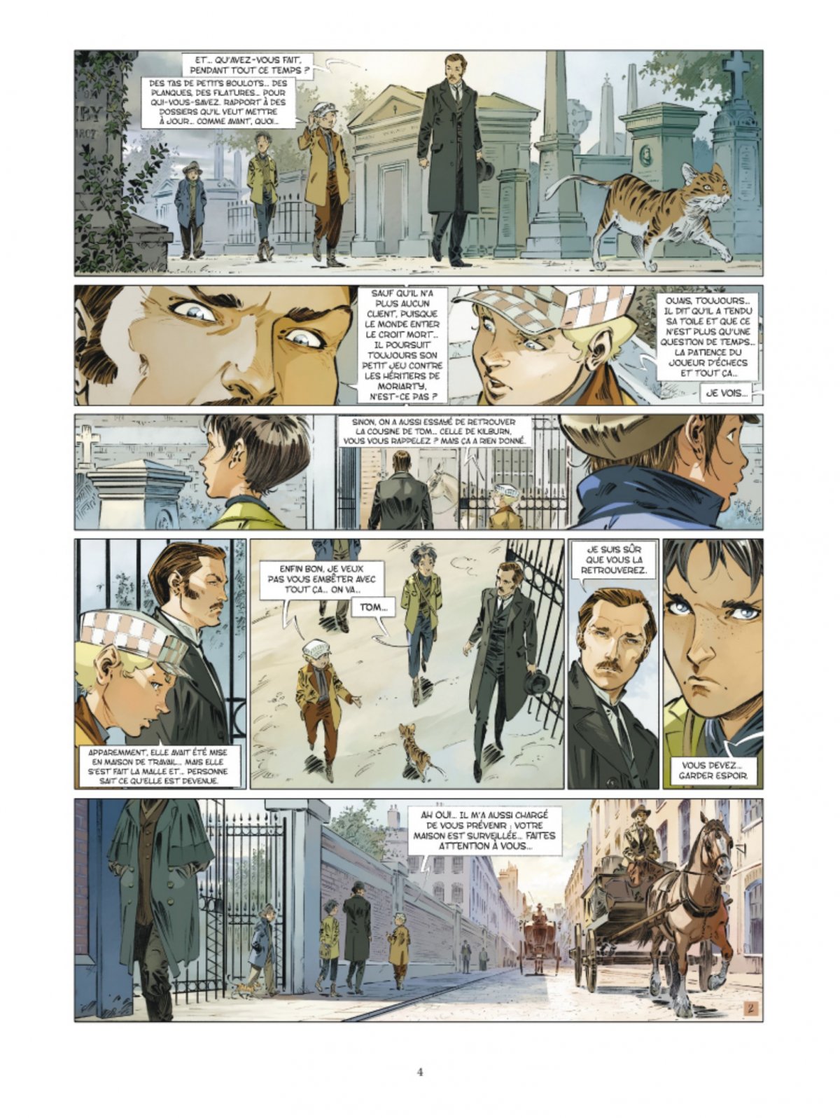 1893. Dissimulé dans l’East End londonien, Sherlock Holmes poursuit sa guerre secrète contre les anciens associés de Moriarty : le redoutable Colonel Moran et le superintendant Blackstone de Scotland Yard... Bien décidé à débusquer Holmes avant qu’il ne refasse surface, l’Homme du Yard va tout mettre en oeuvre pour remonter sa piste - une piste qui est aussi celle de nos héros, indispensables auxiliaires de l’insaisissable détective. Traqués par la police, Billy, Charlie et Black Tom doivent prendre la tangente. Semée d’embûches et de dangers, leur cavale débouchera sur un terrible drame. Pour les Quatre de Baker Street, rien ne sera plus jamais comme avant...Tome après tome, Les Quatre de Baker Street s’affirme comme une série de référence de la bande dessinée grand public. Récompensée à de multiples reprises et sélectionnée pour le Prix de la BD Fnac 2014, elle a déjà séduit plus de 140 000 lecteurs, petits et grands !La recette : des intrigues palpitantes dans un Londres victorien plus vrai que nature et des personnages attachants, le tout magnifié par le trait dynamique de David Etien, jeune génie du dessin qui a placé la barre très haut pour cette série !