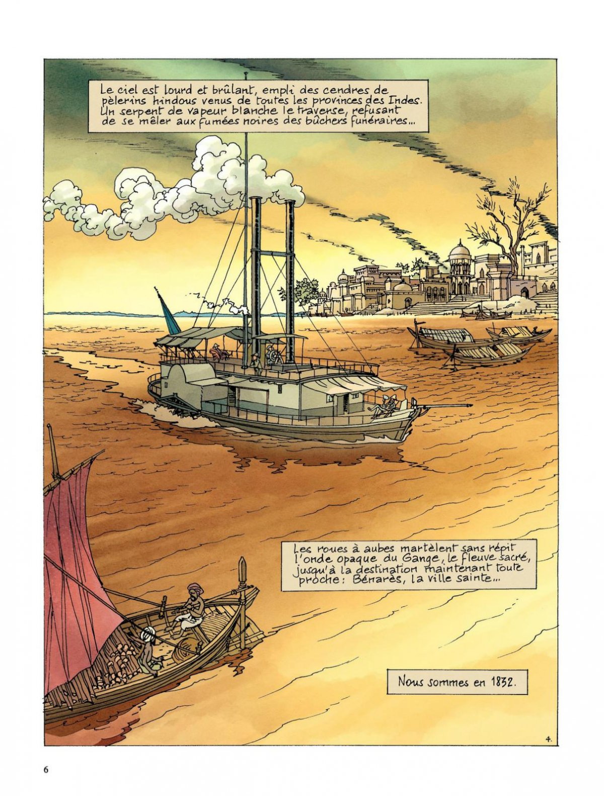 Après Bombay, le deuxième diptyque nous emmène à Bénarès ! Alexander Martin, jeune recrue de l’I.P.S. (Indian Political Service), est chargé d’une nouvelle enquête : sous les ordres du Major Sleeman, il va devoir pourchasser la secte des Thugs, adorateurs de la déesse Kali, qui attaque les indigènes s’est également emparée d’Ayesha, la fille adoptive de Lord Bullock. Guidé par Francis Barton, Alexander va découvrir l’autre côté de l’Inde, violent, extrêmement religieux, bien loin des repères d’un jeune Occidental du XXIème siècle...