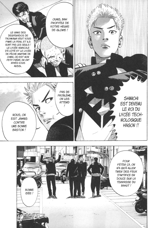 Dans un lycée technologique de la banlieue de Tokyo, Shinichi et ses comparses Ryuji, Masamune et Shiro règnent en maîtres après avoir terrassé les unes après les autres toutes les bandes de la région ! Mais pour l’imbattable Shinichi, cette victoire est trop facile. Que faire à présent qu’il a atteint son objectif ? Se battre, c’est le seul moyen qu’il a trouvé pour apaiser sa frustration à l’idée de devoir reprendre les rênes de la petite usine familiale