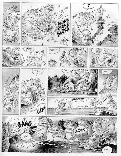 Affublée de son fidèle Ptésosaure qui ne manque pas une occasion de commettre des horreurs, elle règne sur son domaine marécageux en y jetant de sombres maléfices et en y semant la zizanie. Les démons de l’enfer eux-mêmes ne voudraient pas de cette immonde sorcière et de son acolyte reptilien... Ce troisième tome de la saga de Radada confirme la virtuosité graphique de GAUDELETTE, et son grand talent de conteur : neuf histoires construites comme des fables d’un genre nouveau, et dont la morale est donnée par des animaux un peu particuliers. Atrocement drôle.