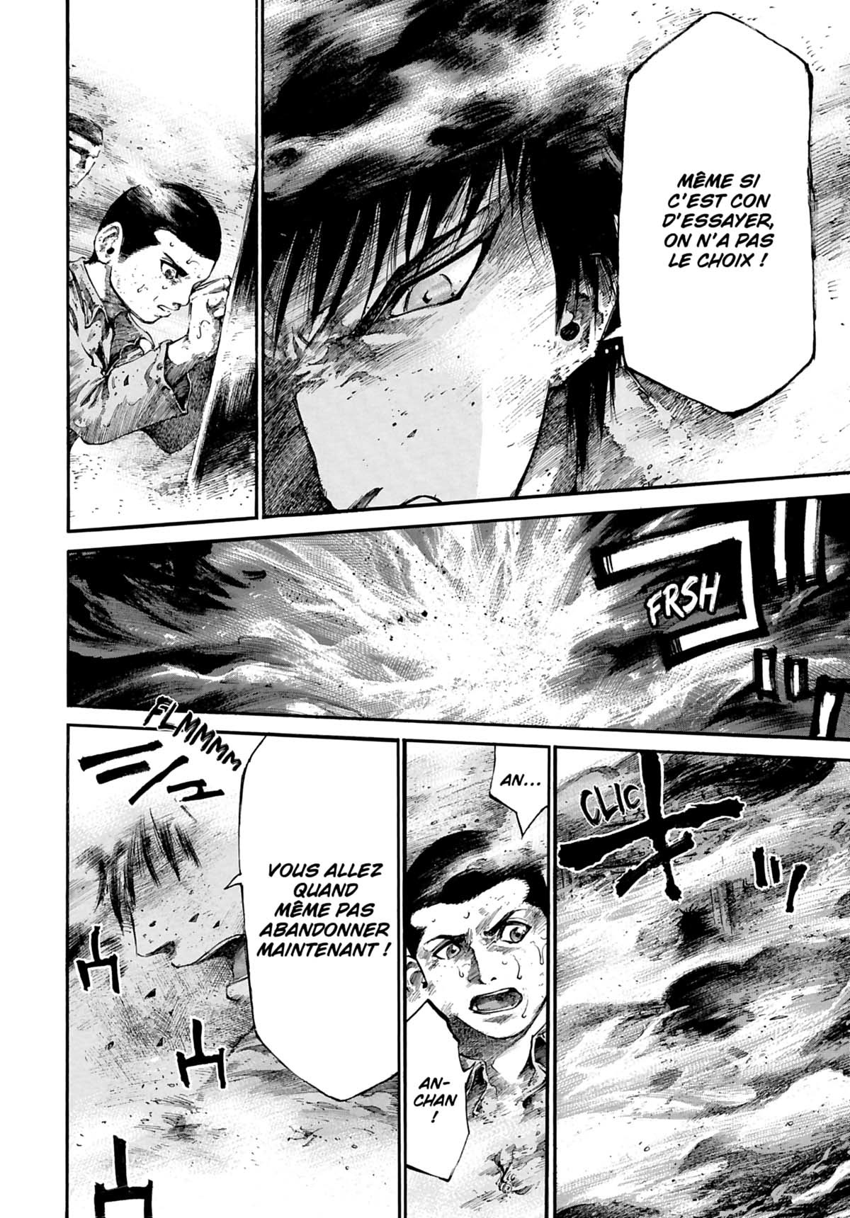 Un incendie a éclaté dans le quartier 2. Par la faute du sadique Ishihara, Joe, Mario, Suppon, Heitai et Kyabetsu sont toujours enfermés dans leur cellule, condamnés à succomber aux flammes. Anchan s’est jeté à l’intérieur, prêt à mourir auprès de ses amis, mais seul Baremoto peut les sauver, en reprenant la clé de la cellule des mains d’Ishihara. Saura-t-il aller à l’encontre de ses principes et accepter de prendre des risques pour les autres ?