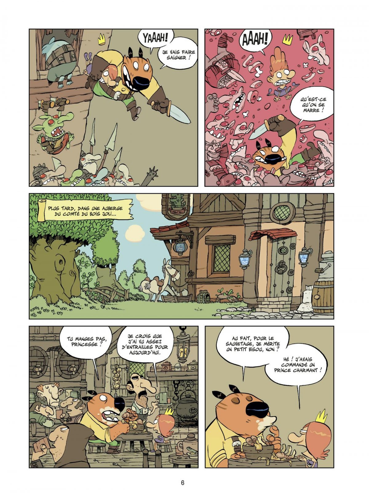 Raowl ne fait pas dans la dentelle : il tranche, il découpe, il raccourcit, il décapite tout ce qui peut se mettre entre lui et le bisou d’une princesse. La première qu’il croise ne le trouve définitivement pas à son goût et s’en va avec quelqu’un d’autre. Lorsqu’il en sauve une seconde, il décide de ne pas la lâcher, d’autant qu’ils ont finalement plein de points communs ! Alors quand elle est kidnappée dans un château plein de cannibales, il ne va pas hésiter à plonger dans la gueule du loup ! Tebo réécrit les contes de fées avec un plaisir évident. En détournant les codes classiques du genre, il invente une bande dessinée truculente, pleine de tripes, de bons mots et de personnages hauts en couleur.