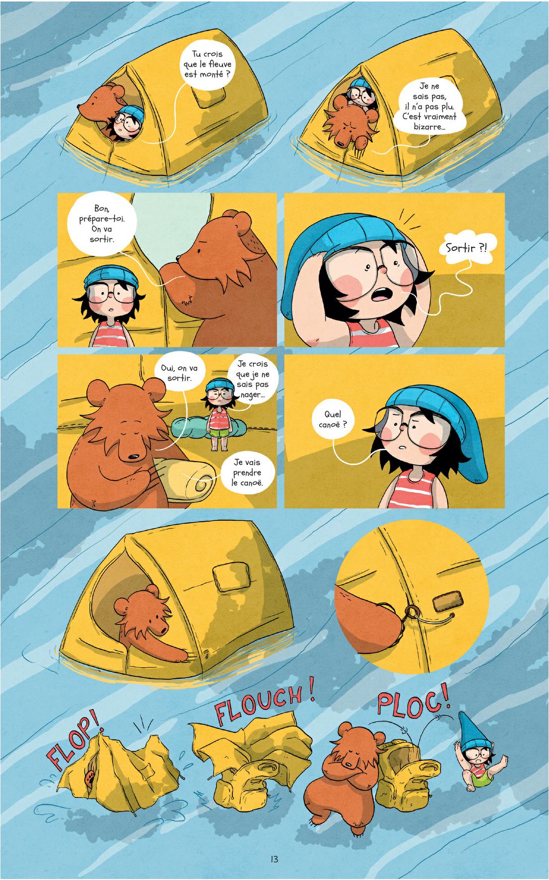 Heureusement pour elle, elle trouve un précieux allié en la personne de Dimas, un gros ours un peu ronchon qui, malgré ses tendances pantouflardes, n’a pas le coeur de la laisser seule. Sac à dos chargé sur les épaules, ils s’engagent donc tous les deux dans une folle recherche