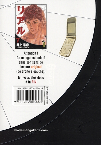 Real 7 est le volume 7 de la série Real par Takehiko Inoue, paru en 2008. Selon nos informations, il n'en existe qu'une seule édition, publiée par Kana.