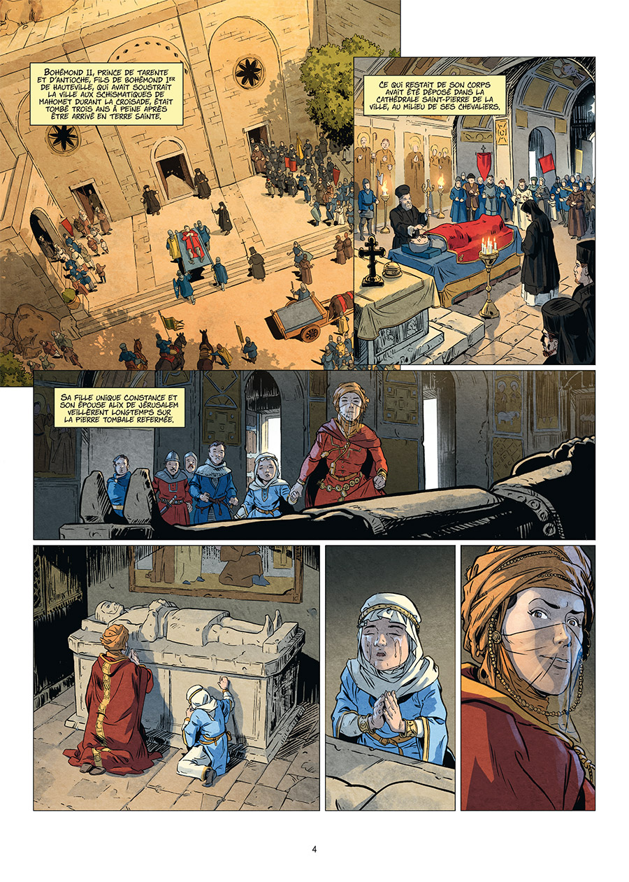 Lorsque le cadavre sans tête de son père Bohémond II prince de Tarente et d’Antioche pénètre dans la cathédrale St Pierre pour y reposer, Constance n’a que 6 ans et sa mère Alix à peine 20. Mais si les larmes de Constance sont sincères, celles d’Alix sont feintes, et cette dernière fait aussitôt enfermer sa fille pour prendre la régence et ainsi avoir les mains libres de s’essayer aux arcanes du pouvoir.