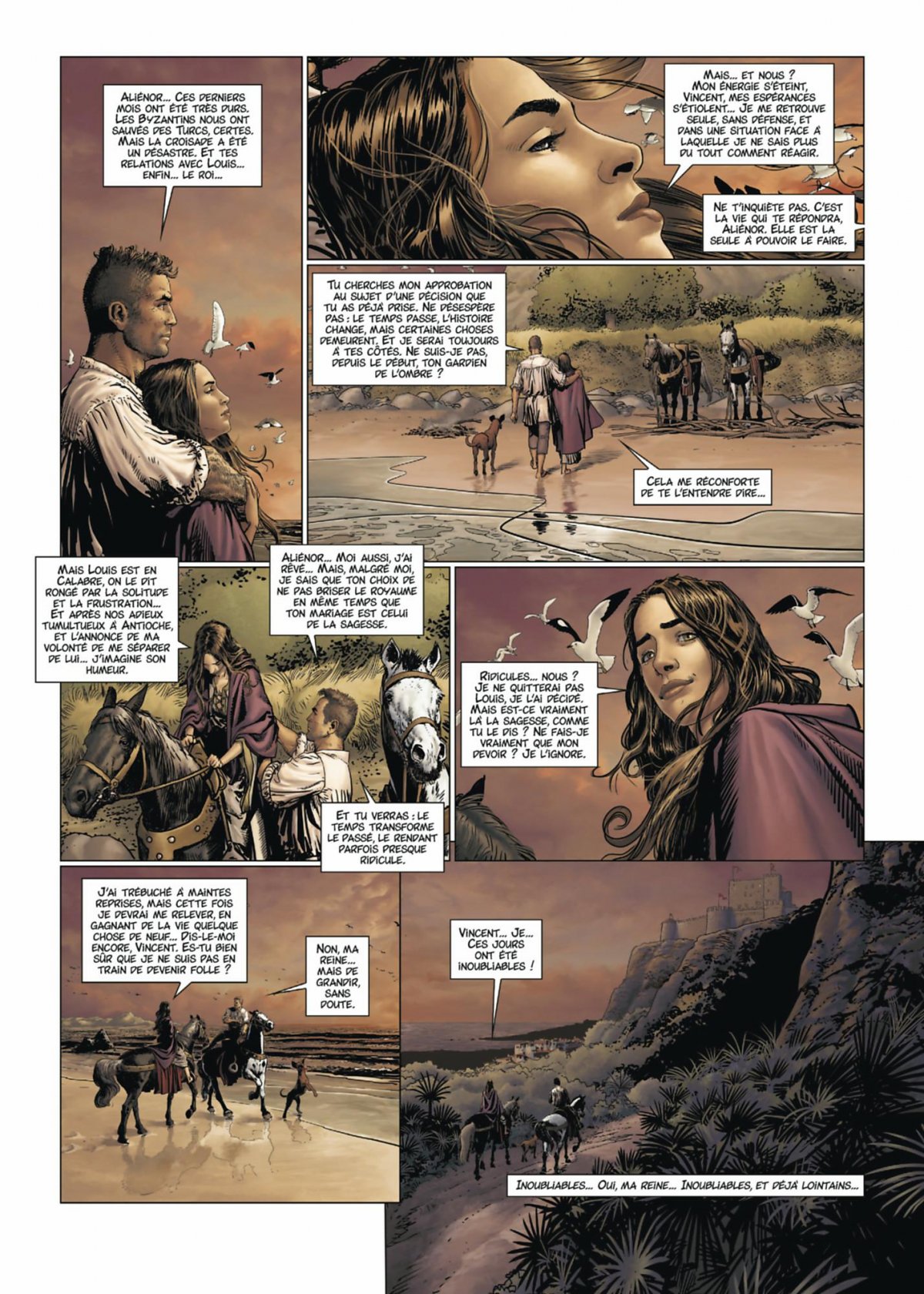 1150. Après la catastrophe de la Deuxième Croisade, Aliénor tente désespérément de sauver son union avec le roi. Ce dernier a lancé des représailles contre Geoffroy et son fils Henri, en écartant Aliénor de toute décision politique. Humiliée, la belle se résout à la séparation. mais des jeux d’alliance inattendus lui offrent alors une solution inouïe et peut-être, la plus belle des récompenses.