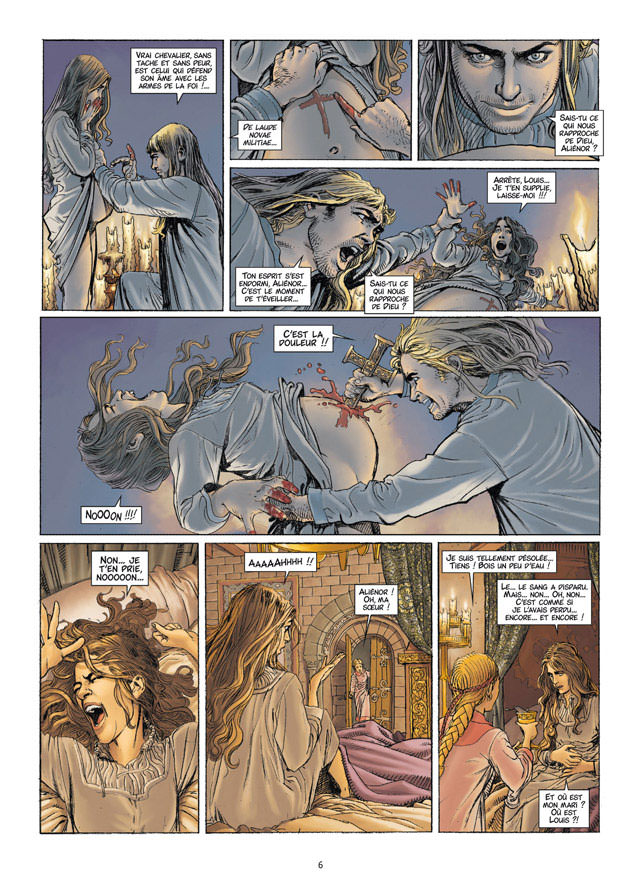 Après le drame de Vitry-en-Perthois et la sanction papale qui touche le royaume, Aliénor, vulnérable, cherche désespérément à donner un enfant à Louis VII. Ses voeux sont couronnés de succès : elle accouche d’une fille. Le 25 décembre 1145, Louis VII annonce à Bourges sa participation à la deuxième croisade. Aliénor le suit. Mais la croisade est un échec. Le couple royal vit ses dernières heures.