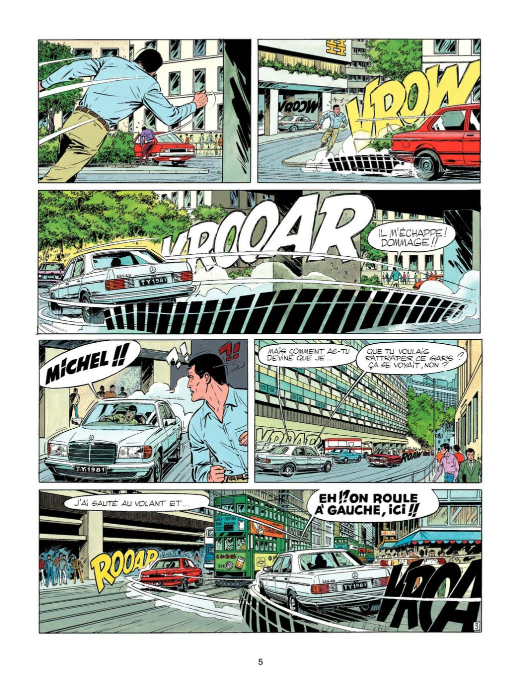 Michel Vaillant atterrit à Macao. En effet, il vient pour courir le Grand Prix de Formule 1 de Macao. En compagnie de Steve Warson et Julie Wood ainsi que Paul Belmondo, il s’apprête à rejoindre leur hôtel pour se reposer, quand soudain il aperçoit une figure bien connue qui d’ailleurs se dépêche de s’enfuir. Une course poursuite commence aussitôt dans les rues de la ville.