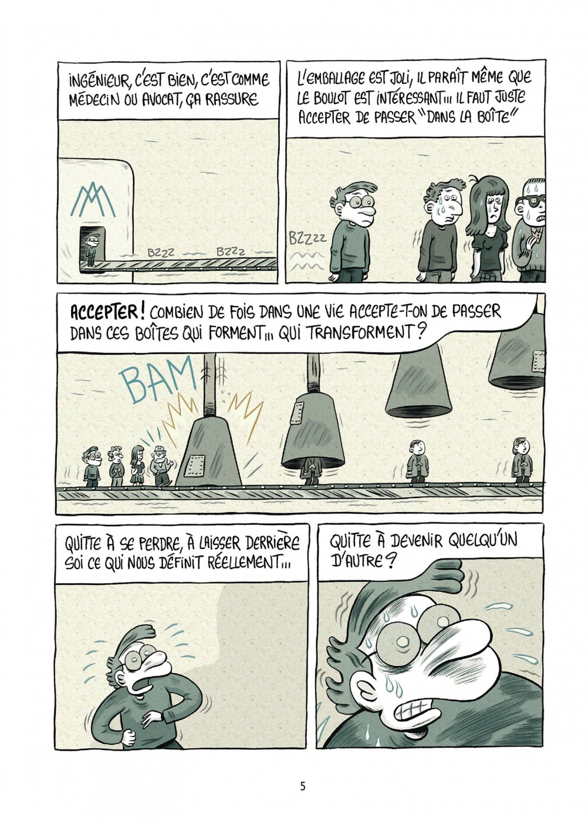 Jean n’a jamais vraiment su ce qu’il voulait faire de sa vie alors il a suivi les aspirations des autres. Il est rentré aux Arts et Métiers, il a subi le bizutage de l’école et décroché son diplôme d’ingénieur pour plaire à son père. Il a accepté ensuite un boulot qui ne lui plaisait pas parce qu’il allait devenir papa et qu’il devait « assurer ». Il a tout fait selon les règles, mais est-ce vraiment sa vie ?