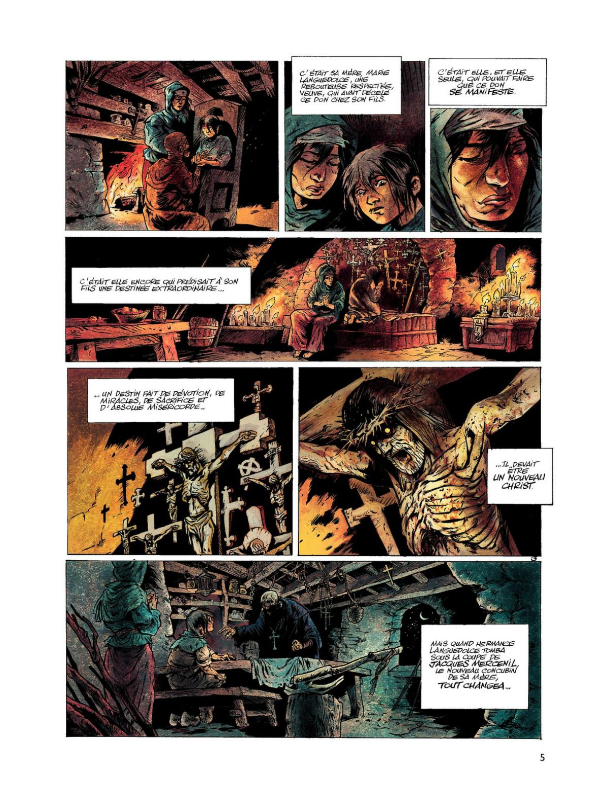 Jamais Philippe Thirault n’excelle autant que dans la noirceur la plus totale. Pour Le Rêve de Jérusalem, il est formidablement bien relayé par Lionel Marty, dont le coup de pinceau donne une puissance incroyable à cette histoire de violence et de foi. Un album qui fera date parmi les succès récents "médiéval-mystique".