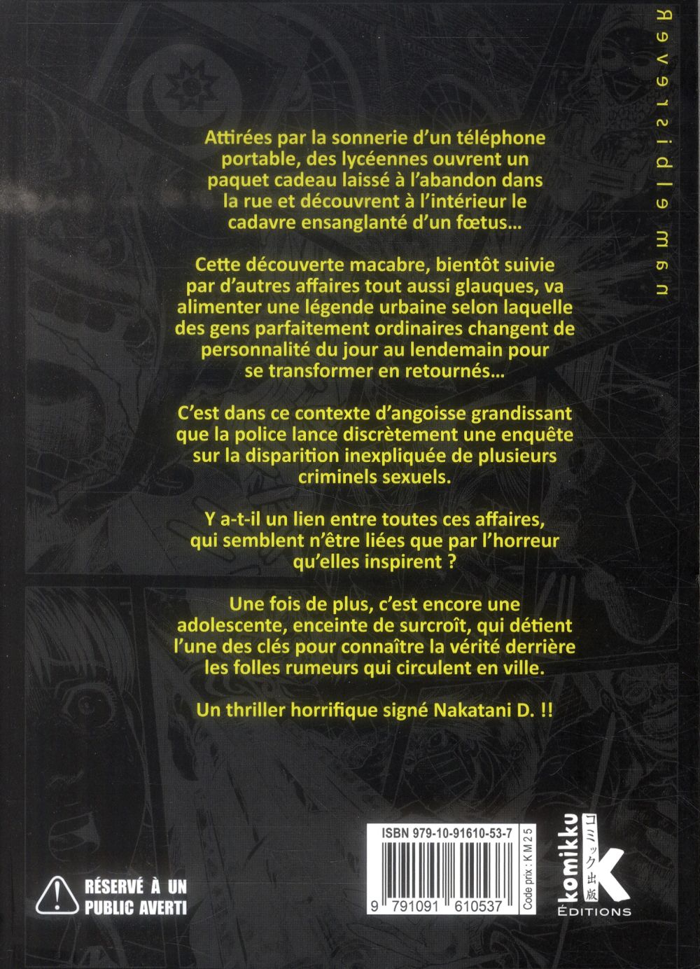 Attirées par la sonnerie d’un téléphone portable, des lycéennes ouvrent un paquet cadeau laissé à l’abandon dans la rue et découvrent à l’intérieur le cadavre ensanglanté d’un foetus... Cette découverte macabre, bientôt suivie par d’autres affaires tout aussi glauques, va alimenter une légende urbaine selon laquelle des gens parfaitement ordinaires changent de personnalité du jour au lendemain pour se transformer en retournés... C’est dans ce contexte d’angoisse grandissant que la police lance discrètement une enquête sur la disparition inexpliquée de plusieurs criminels sexuels. Y a-t-il un lien entre toutes ces affaires, qui semblent n’être liées que par l’horreur qu’elles inspirent ? Une fois de plus, c’est encore une adolescente, enceinte de surcroît, qui détient l’une des clés pour connaître la vérité derrière les folles rumeurs qui circulent en ville.