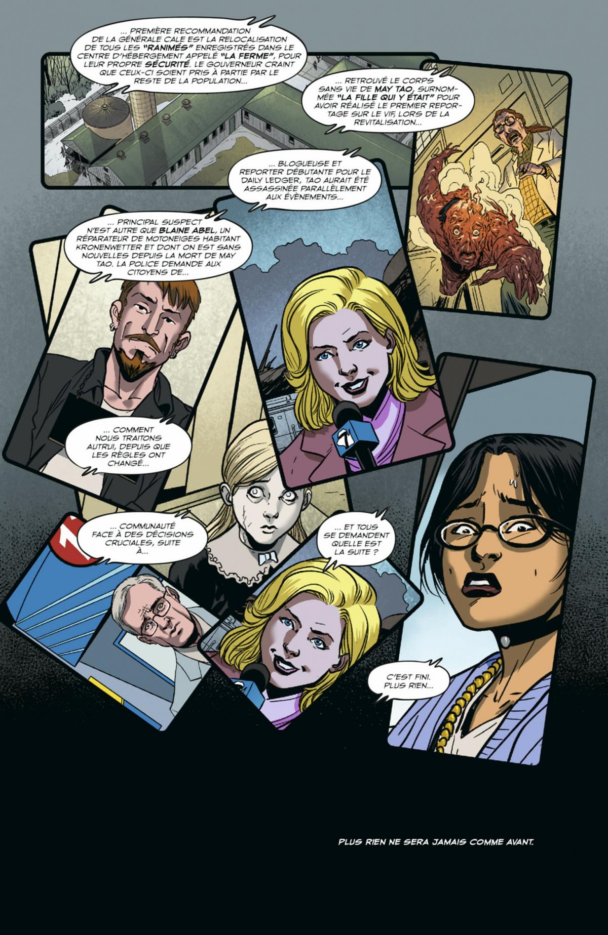 Comme si cela ne suffisait pas à Dana Cypress d’être en charge d’une situation aussi explosive qu’improbable, un tueur en série sévit à Wassau. La journaliste May Tao est la dernière des victimes en date. Dana est sur la piste de Blaine Able, le tueur présumé, qui est également poursuivi par Em Cypress, une ranimée qui est aussi la propre soeur de Dana.