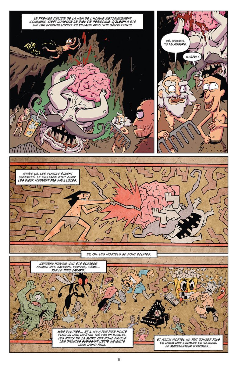 Après avoir sauvé le monde de la destruction par le génie de la tech’ Glug Vronsky, Rick & Morty doivent faire face à une bande de dieux bizarres qui se sont échappés d’Anti-Hala. Semant le chaos sur leur chemin, ils tentent de s’emparer du monde. Noelle, l’ancienne petite copine de Rick, a été dotée de pouvoirs divins tandis que la quête de la perfection mathématique de son oncle Goldenfold fait toujours rage. Rick fait équipe avec le seul ennemi capable de l’anéantir... Rapace Man ! Tout cela culmine dans une course sur une planète désolée aux confins de l’univers, l’ultime espoir pour un nouveau départ s’y joue... ainsi que le tout dernier space milk-shake !