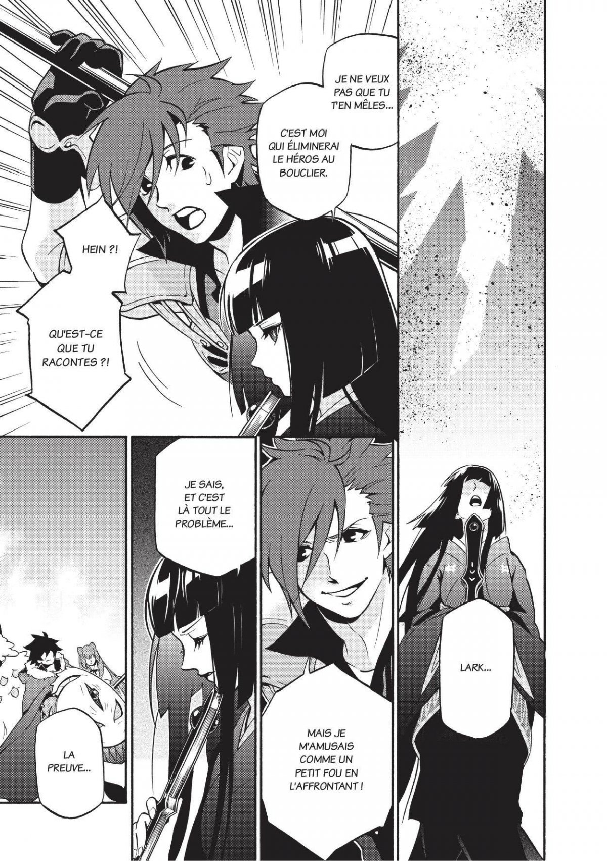 Trahison, monstres et rivalités : comment survivre dans un RPG avec juste un bouclier ? Après un retournement de situation inattendu, Naofumi est obligé de se battre contre Lark, Tellis et Glass. Son bouclier dévoreur d’âmes et l’épée magique de Raphtalia l’aident à leur infliger de gros dégâts, mais Glass parvient à recouvrer ses forces grâce à des potions de guérison. Une fois encore, le combat semble mal engagé pour la compagnie de Naofumi. Fort heureusement, le temps joue en sa faveur ! Plus tard, alors que les héros se remettent de la bataille sur l’archipel Carmila, une nouvelle affaire de fausses accusations attise la colère de Naofumi ! Qui en fera les frais ?