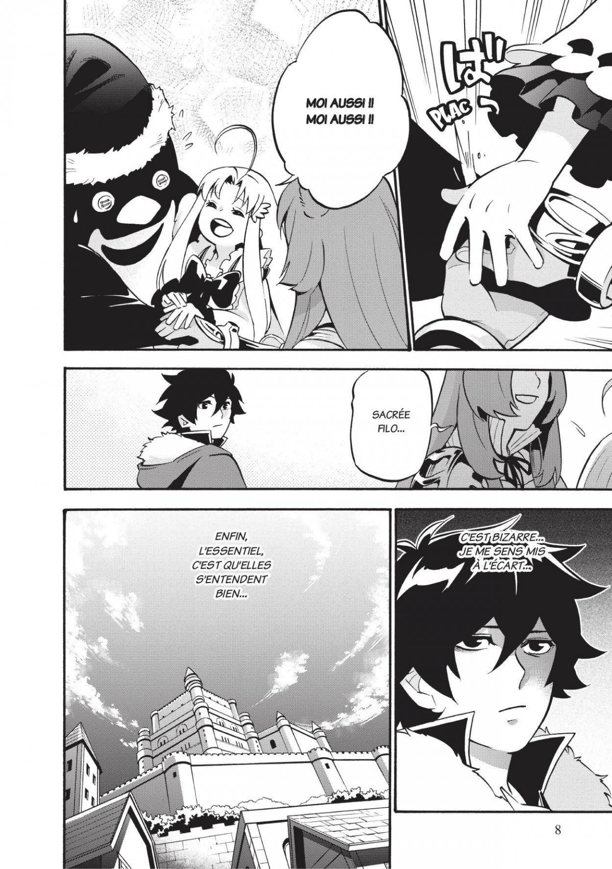 Liscia a rejoint la compagnie du héros au bouclier, tout comme Keel, qui s’est remis de son traumatisme. Naofumi reçoit l’aide d’une escrimeuse nommée Éclair. Les quatre héros mythiques répondent à l’appel de la reine et partent chasser de mystérieux démons, mais de nouveaux dangers les guettent !