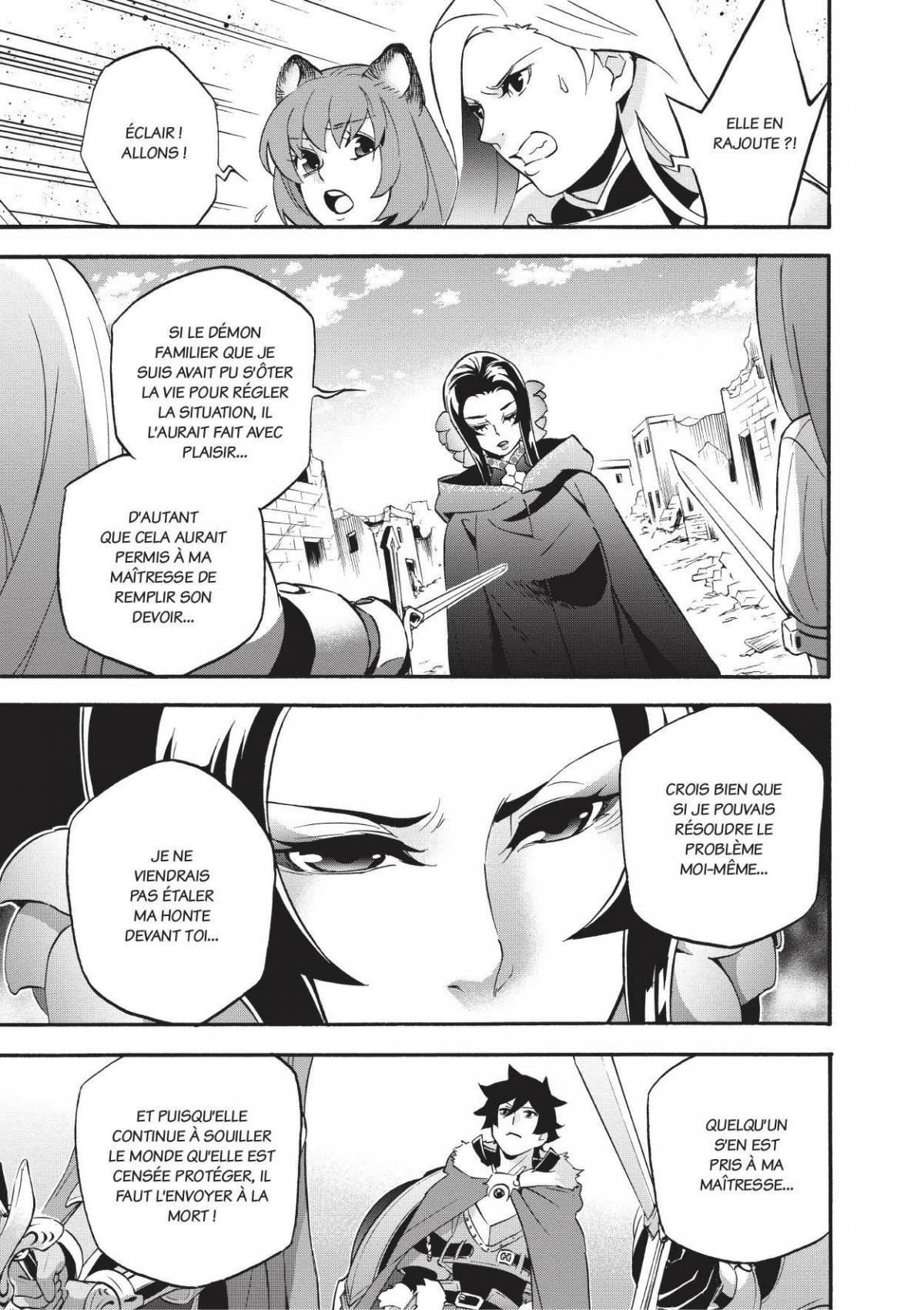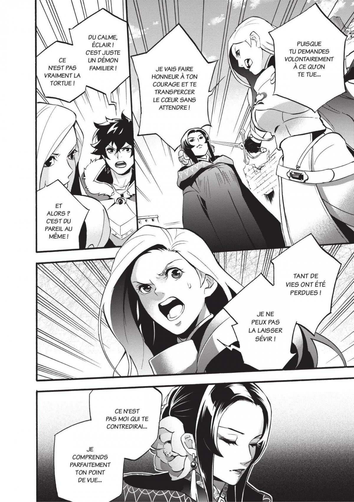 Guidée par Aust Penglai, qui se présente comme l’un des démons familiers de Reiki la tortue spirituelle, la compagnie de Naofumi se prépare à lancer la contre-attaque contre le mastodonte. Mais, loin de s’affaiblir, Reiki semble au contraire gagner en puissance et sème le désarroi parmi les troupes de la coalition. Naofumi et sa troupe décident de jouer le tout pour le tout en pénétrant à l’intérieur de la tortue géante. C’est alors qu’ils font une rencontre pour le moins inattendue...