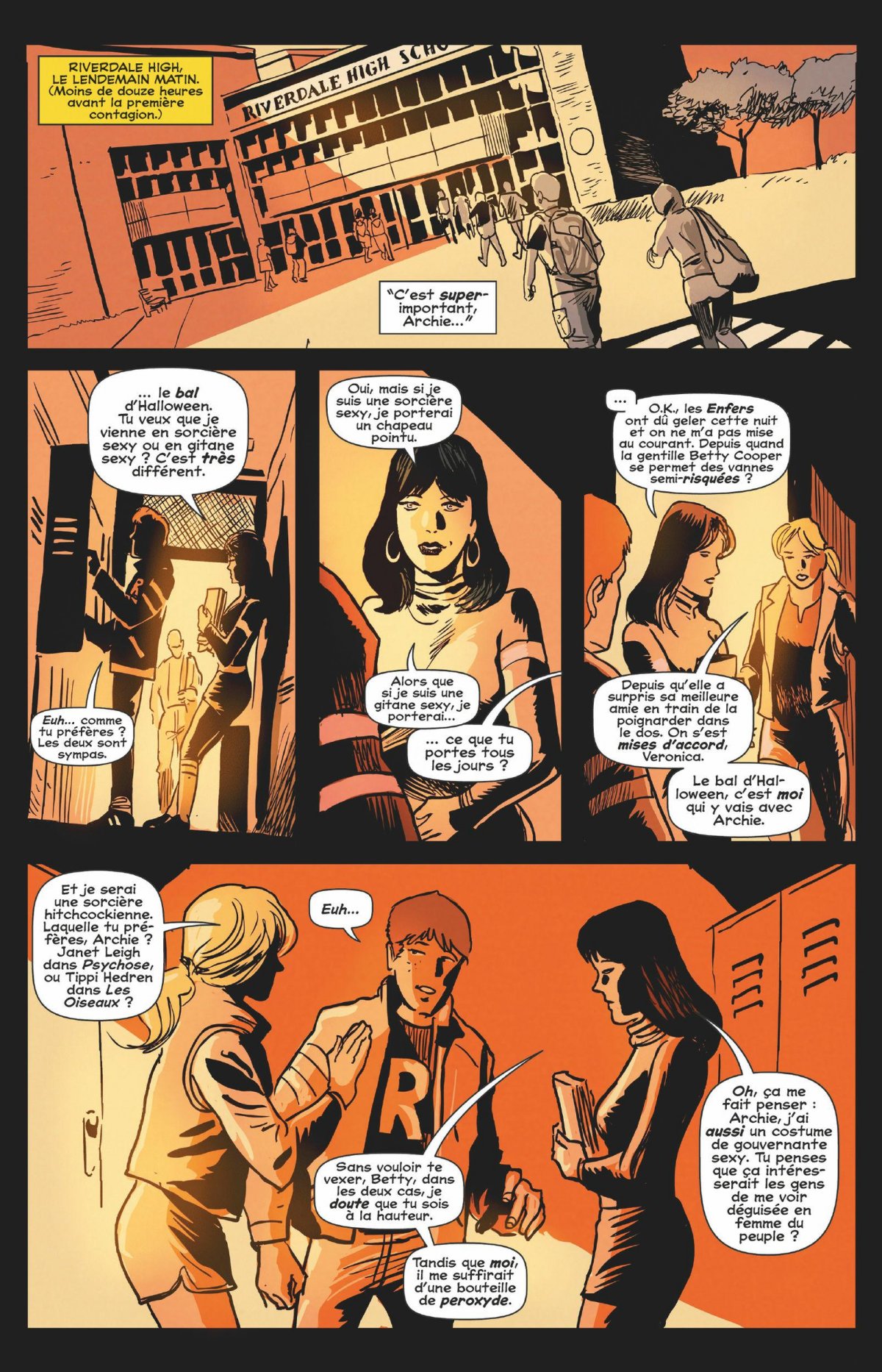 Riverdale s’apprête à devenir le théâtre d’une catastrophe directement venue des enfers. Le cycle de la vie a été brisé, d’occultes maléfices sont en causes et les entrailles de la terre régurgitent des morts animés par un désir unique : la soif de sang frais. Le virus se répand à une vitesse incontrôlable et, face à la mort, Archie, Betty et Veronica devront garder leur sang-froid et rassembler leurs forces pour combattre ce mal infernal