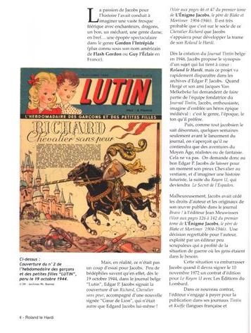 Cet ouvrage, réalisé et mis en page par Philippe Biermé, Président de la fondation E.P. Jacobs, se compose de deux parties : un dossier sur Roland le Hardi avec, entre autres, un fac-similé du manuscrit de 11 pages rédigé par Jacques Van Melkebeke ainsi que le cahier de Jacobs sur cette histoire... et un dossier sur La Chevalerie, comprenant de nombreuses illustrations moyenageuses de Jacobs pour des magazines de l’époque et des dessins d’enfance.