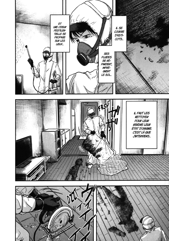 Taji travaille pour une entreprise de nettoyage spécialisée dans les cadavres en décomposition. Les macchabées découverts sur le tard laissent des traces insupportables pour le commun des mortels, mais lui a le coeur bien accroché. La mort, il la connaît depuis l’enfance. Il a vu le corps de sa mère se balancer au bout d’une corde. Le traumatisme lié à ce suicide est ancré en lui, et chaque nettoyage est une catharsis