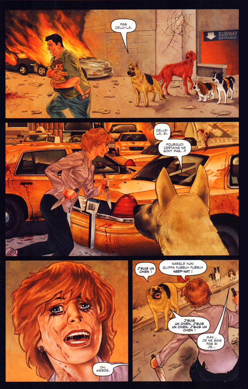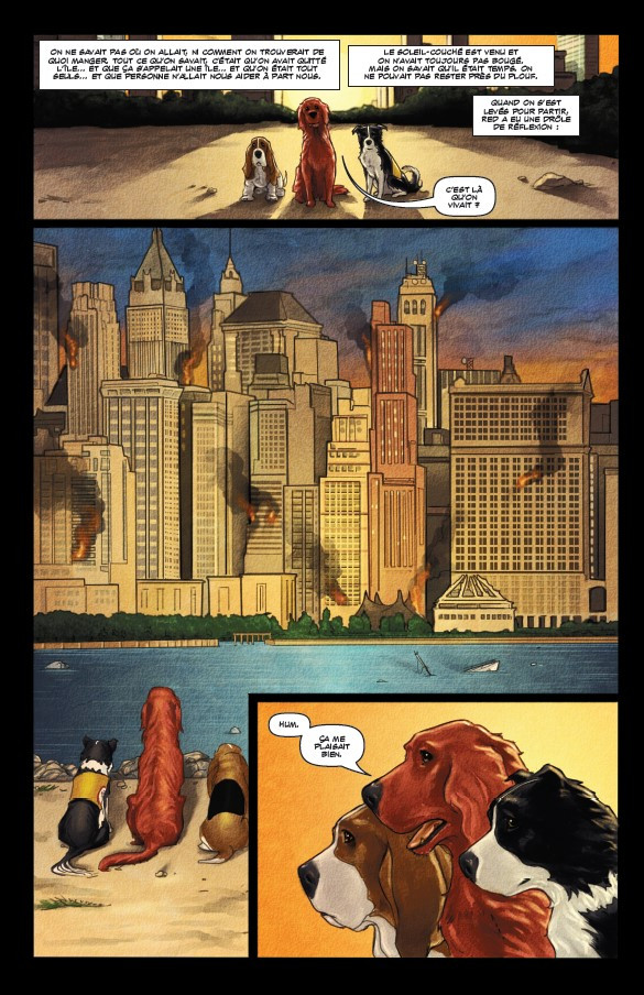 C’est le monde de nos maîtres, mais les maîtres ne sont plus là et nous ne savons pas comment le faire fonctionner. A nous de nous débrouiller maintenant. Et Rover parle d’une drôle de façon, Red n’est pas très futé. Et j’ai tout le temps peur.