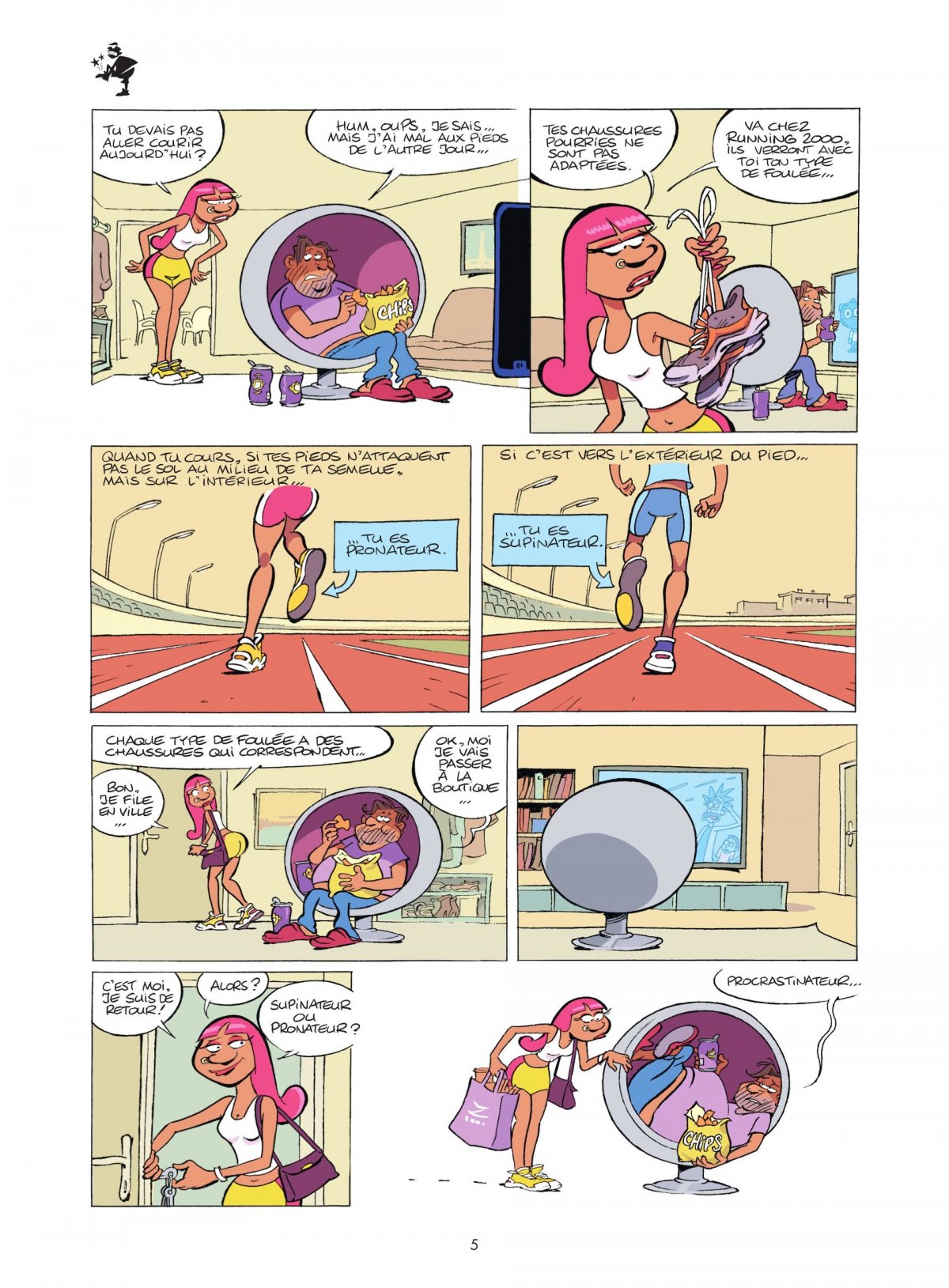 Rien ne sert de partir à point, il faut courir ! Fred s’initie à la course à pied, à cause d’une ordonnance de la médecine du travail qui lui demande expressément de se mettre au sport... Pour lui qui n’aimait que le sport devant la télé, le choc est terrible, mais il a décidé de s’y mettre... Tout est bon pour la motivation : la bonne bière fraîche à l’arrivée, ses compagnons du club de course, sa femme qui lui crie dessus, mais aussi tous les gadgets qui aident les coureurs : montre GPS, gels énergétiques, vêtements ethniques...
