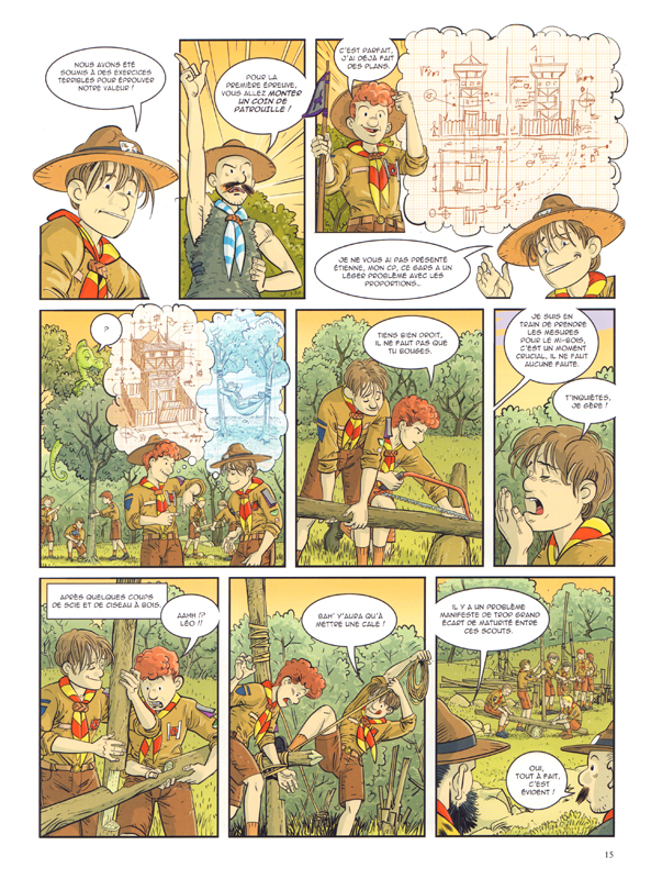 Ils ont entre 8 et 25 ans et, ce samedi, pas question de traîner sur un canapé : ils partent en week-end scout !Jeannettes, louveteaux, guides, éclaireurs, guides-aînées, routiers, chefs et cheftaines, tous appartiennent à la grande famille des Scouts unitaires de France. Après un grand jeu mémorable et un repas trappeur consistant, nos héros se rassemblent pour la veillée ponctuée des traditionnels chants. Mais là, stupeur ! Tout le groupe assiste à l’arrivée d’un étrange assemblage :une machine à remonter le temps. Avec cet appareil révolutionnaire de bois et de ficelle, fruit du « système D » scout, nos six jeunes téméraires décident de plonger dans le passé à la recherche des origines des SUF. À travers les grands événements de leur histoire, des rassemblements mythiques, des personnages fondateurs, ils vont redécouvrir - en vivant mille aventures - l’esprit unique qui anime leur mouvement...L’esprit SUF