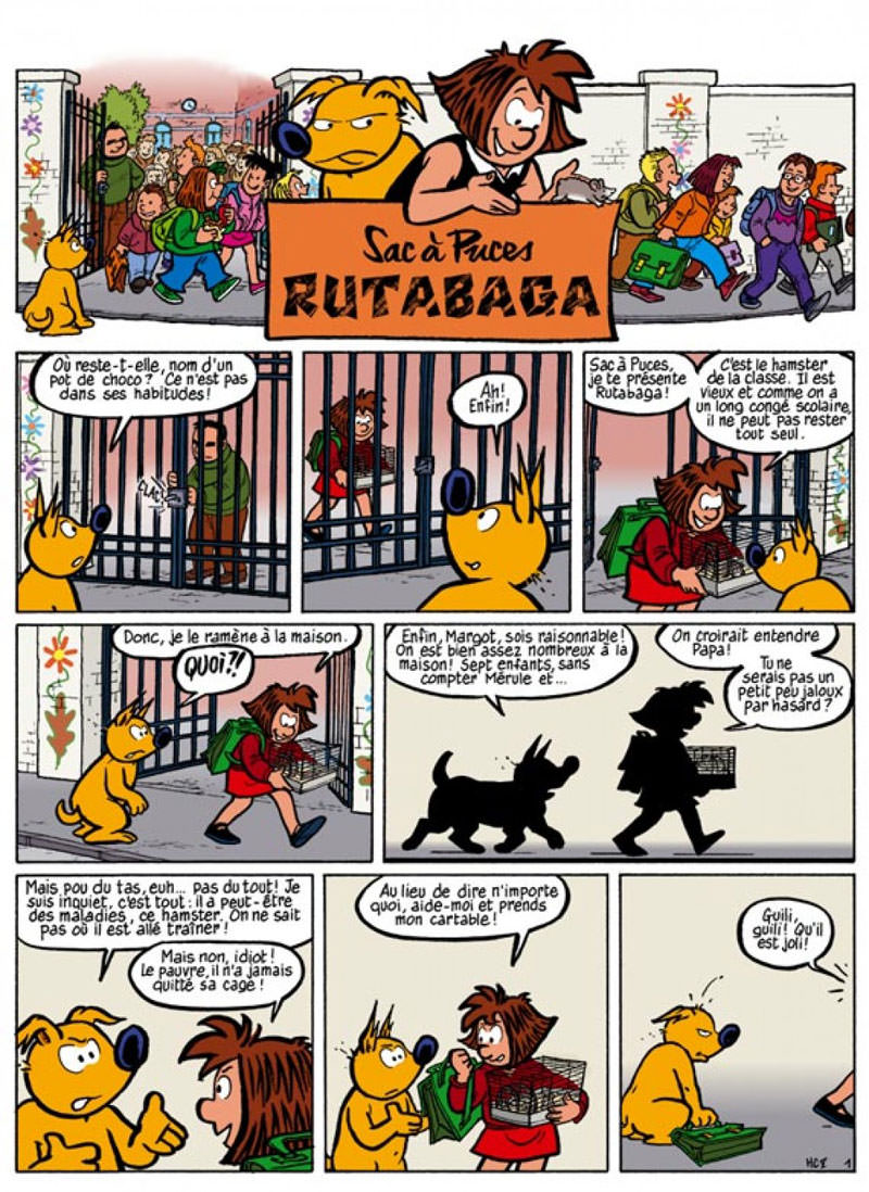 Des chiens qui peuvent faire du baby-sitting, rouler à vélo, utiliser une carte de crédit ou adoucir les dernières heures d’un vieux hamster, ça ne court pas les rues. Et pourtant, Sac à Puces, bâtard pur race et authentique cabot, est capable de bien d’autres exploits encore. À tel point que la jeune Margot emmènerait bien son inséparable compagnon au pedigree incertain en voyage de nonosses ! Au grand désespoir de ses parents qui ne partagent pas son enthousiasme pour ce sale clebs au pelage très fréquenté...