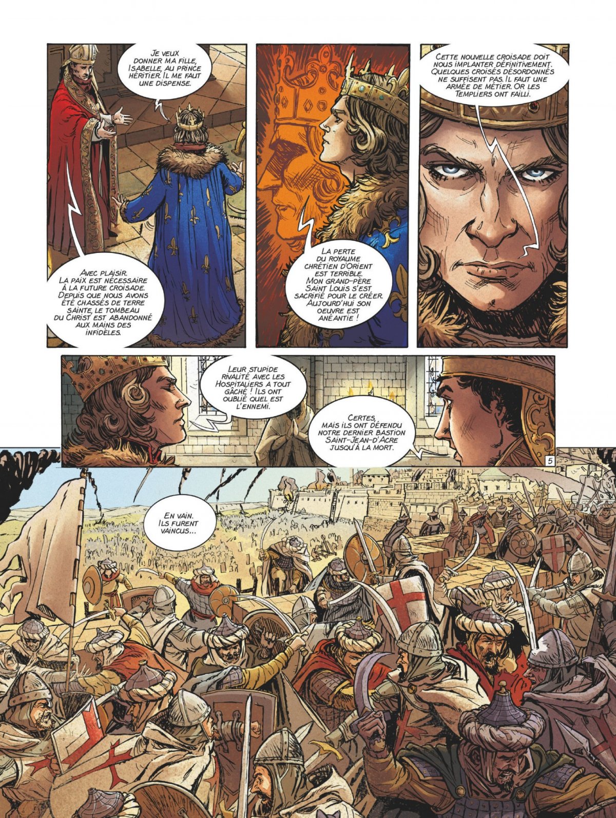 Le roi obtint aussi de Clément V qu’il condamne l’ordre du Temple et proclame sa dissolution. Devant les aveux des dirigeants de l’ordre, pourtant arrachés sous la torture par l’instruction diligenté par le roi, le pape ne peut empêcher que Jacques de Molay et ses compagnons ne soient menés au bûcher. Ainsi furent sacrifié les Templiers qui avaient pourtant servi avec ferveur le royaume et la chrétienté menant les grandes croisades en Terre Sainte.