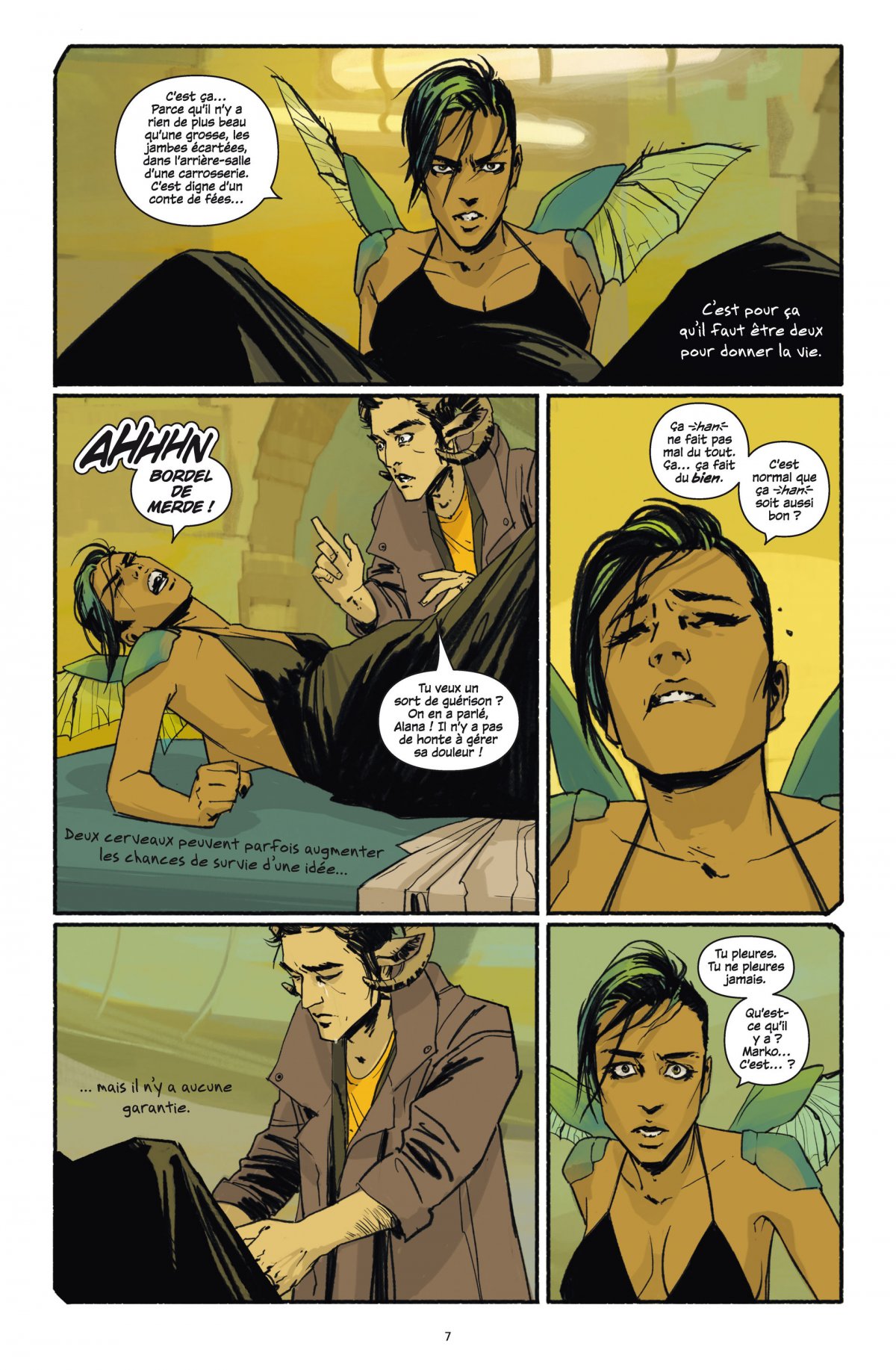 Un univers sans limite, peuplé de tous les possibles. Une planète, Clivage, perdue dans la lumière froide d’une galaxie mourante. Sur ce monde en guerre, la vie vient d’éclore. Deux amants que tout oppose, Alana et Marko, donnent naissance à Hazel, un symbole d’espoir pour leurs peuples respectifs. L’espoir, une idée fragile qui devra s’extraire du chaos de Clivage pour grandir, s’épanouir et conquérir l’immensité du cosmos.