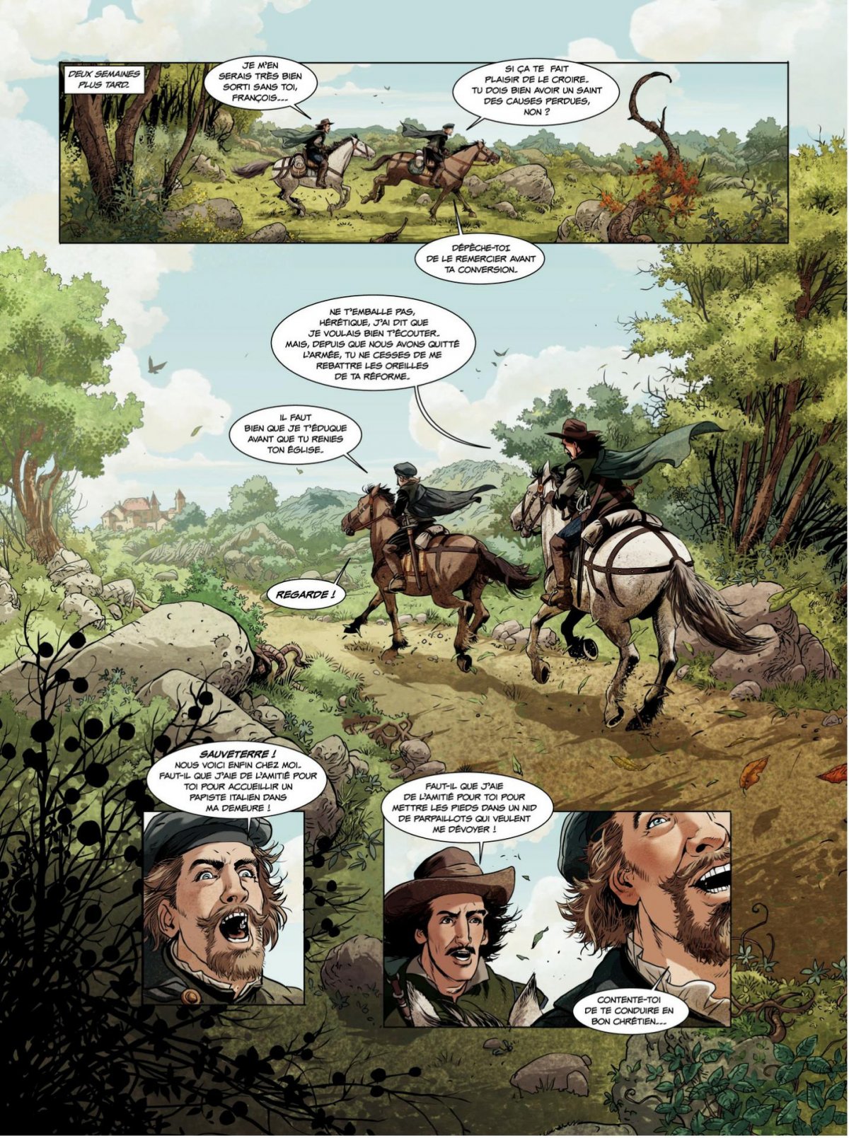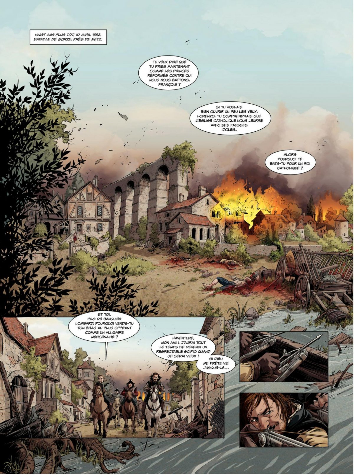 Scipio, qui détient entre ses mains Élie blessé, se rappelle alors d’un drame qui a eu lieu vingt ans plus tôt et qui, aujourd’hui, a de funestes répercussions : à l’époque, il se battait aux côtés de François de Sauveterre, le père d’Élie, dans l’armée du roi Henri II. Lorsqu’en revenant de la campagne d’Allemagne de 1552, François le présenta à son épouse, Aude, la mère d’Élie, ce fut le coup de foudre...