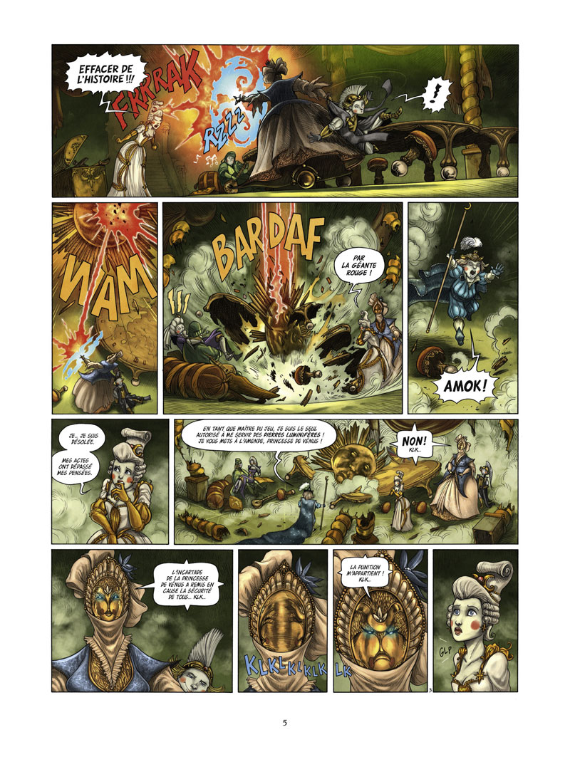 Alchimie, aventure et marivaudage sur les traces du plus anticonformiste des nobles du XVIIIe siècle ! Dans des sphères spatiales éthérées, les guerres et intrigues politiques sont jouées comme des parties de jeu de société pour occuper des enfants capricieux... Pour faire gagner la France contre ses adversaires l’Angleterre et la Prusse, un pion hors catégories : Saint-Germain ! Après avoir oeuvré sous le masque du Babillard pour le mystérieux alchimiste Goupil dans le tome 1, on retrouve cette fois Maximilien de Saint-Germain missionné par Louis XV en personne pour sauver le maréchal de Saxe. Celui-ci souffre d’un mal inconnu qui l’empêche de jouer son rôle sur l’échiquier militaire, pourtant indispensable au royaume de France. Une fois qu’il a identifié l’origine de l’empoisonnement, Saint-Germain devra à nouveau jouer les monte-en-l’air pour dérober les ingrédients du remède. Il lui faudra également vite comprendre qui se cache derrière les innombrables obstacles qui se dressent sur sa route... ?Heureusement que pour s’en tirer, il a, en plus de sa flamboyance et de sa verve naturelles, l’aide précieuse de sa maîtresse la Sans-Souci et du jeune Joseph ? Entre fantastique, truculence, mystères alchimiques et moulinets d’épée, une grande saga prenante et goguenarde orchestrée par les étonnants Gloris et Bergeron, au talent aussi criant que l’habileté de leur héros à pourfendre un mécréant ou à tourner un beau compliment...
