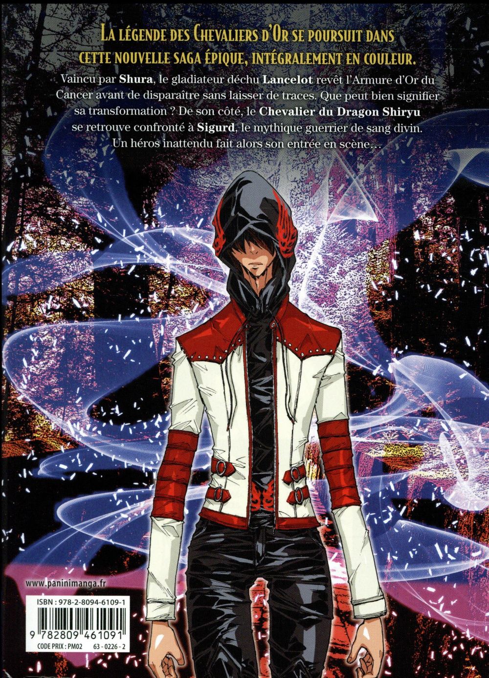 Vaincu par Shura et privé de son épée Arondie, Lancelot se métamorphose en chevalier d’or du Cancer, avant de disparaître sans plus d’explication. Quels insondables plans divins se cachent derrière cette transformation aussi subite qu’inattendue ? De son côté, le dragon Shiryu se trouve une nouvelle fois opposé à Sigurd, le légendaire guerrier de sang divin issu de la mythologie nordique. Alors que le combat fait rage, un héros que l’on n’avait pas vu depuis bien longtemps fait brusquement son entrée en scène...