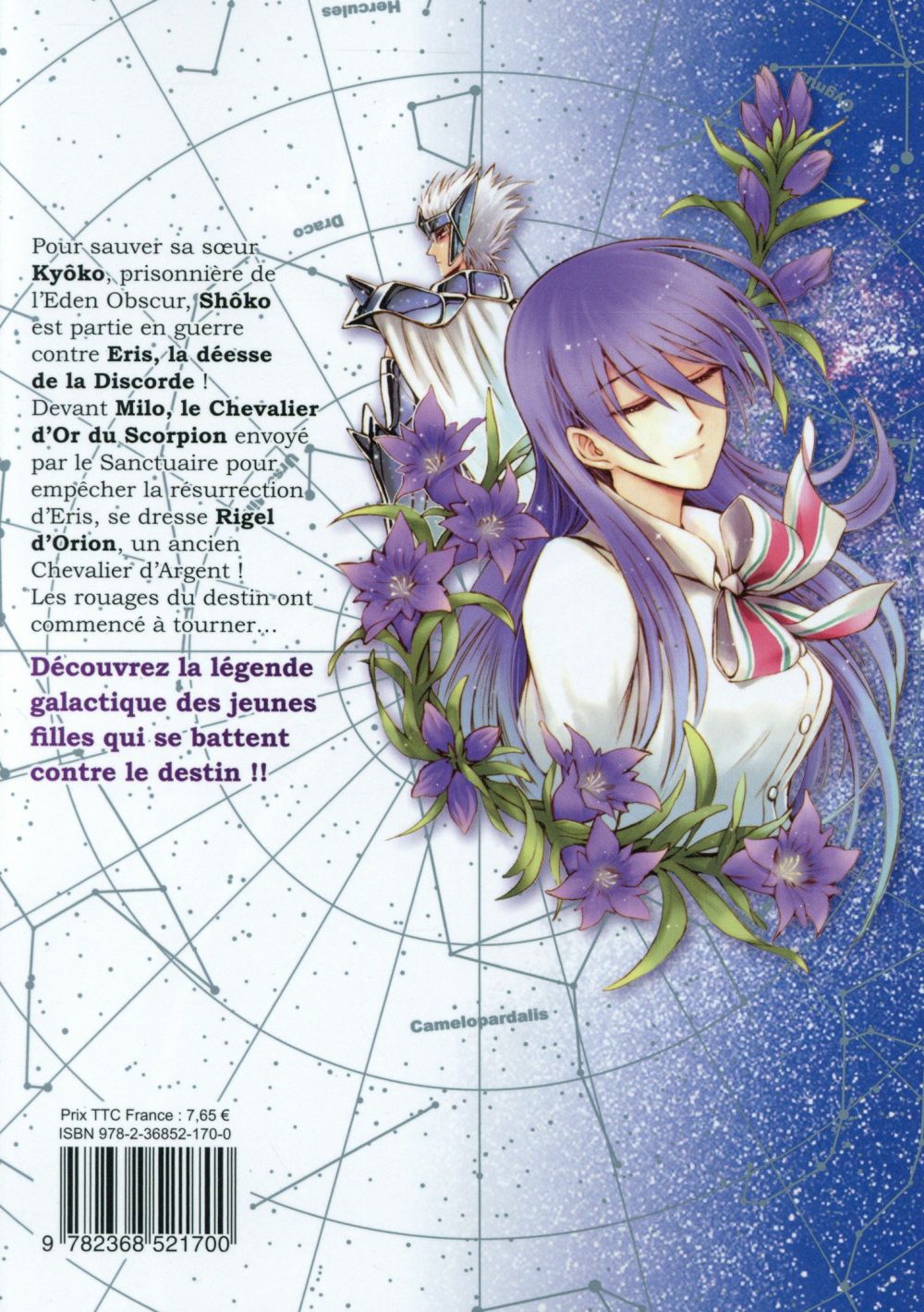 Pour sauver sa soeur Kyôko, prisonnière de l’Eden Obscur, Shôko est partie en guerre contre Eris, la déesse de la Discorde ! Devant Milo, le Chevalier d’Or du Scorpion envoyé par le Sanctuaire pour empêcher la résurrection d’Eris, se dresse Rigel d’Orion, un ancien Chevalier d’Argent ! Les rouages du destin ont commencé à tourner ...