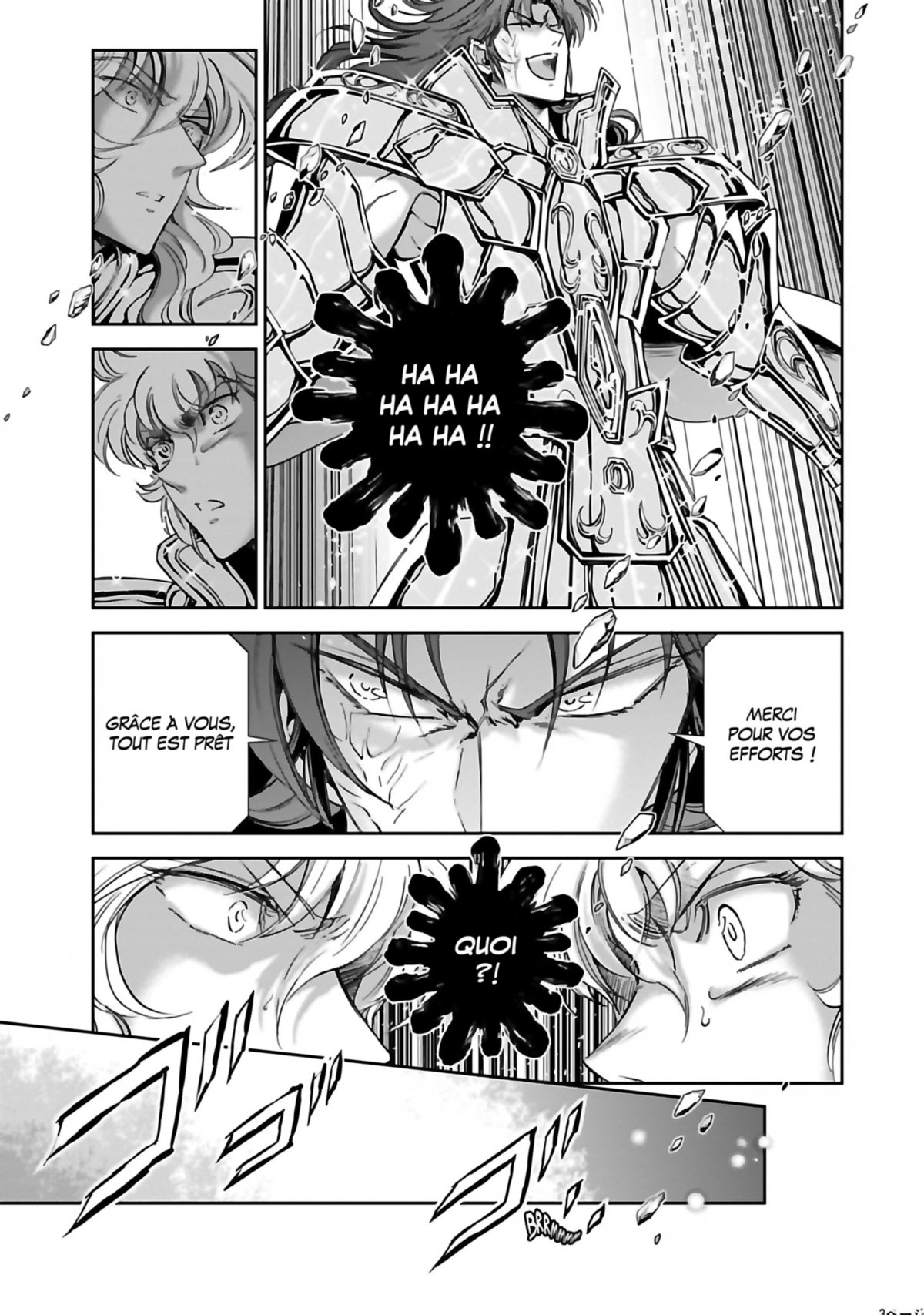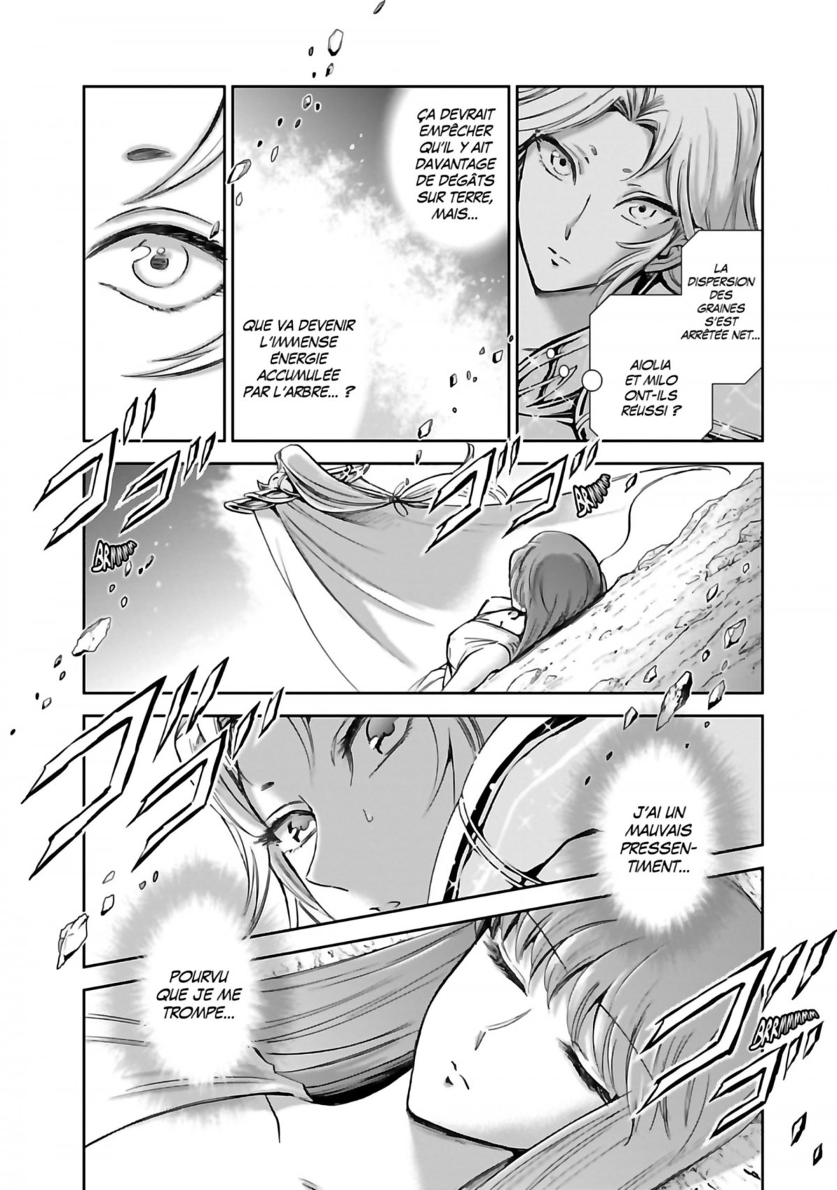 Alors que grâce aux racines de l’Arbre Maléfique, Saga, le Chevalier d’Or des Gémeaux, continue d’aspirer l’énergie de Discorde générée par les combats, Aiolia, le Chevalier d’Or du Lion, se dresse devant lui et déchaîne ses Éclairs Foudroyants !!