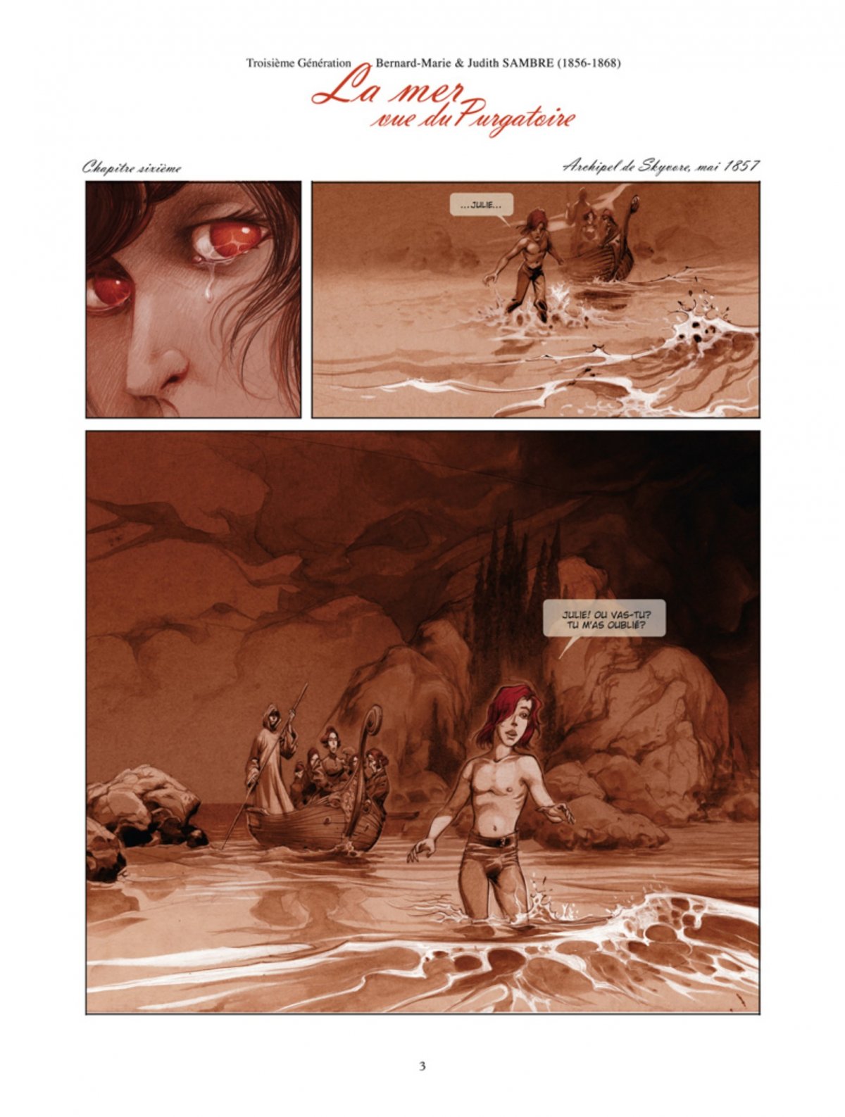 La suite tant attendue de la BD culte de Yslaire ! Skyvore island, mai 1857. Au coeur de la tempête, La Désirée fend les flots au large de l’Irlande. À son bord, des bagnardes enchaînées qui en échange d’une remise de peine ont accepté de s’exiler à Cayenne. Parmi elles, le matricule 3492, alias Julie Saintange, s’abandonne à la mélancolie. Les souvenirs de Bernard Sambre se disputent à ceux de Bernard-Marie, leur enfant commun. Le premier est mort, le second lui a été volé... Quand soudain, éventré par un récif, le bateau sombre dans une mer démontée. Malgré ses chaînes, Julie survit à la noyade. Elle échoue au pied d’un phare perdu en pleine mer. Adam Scott Shagreen, le gardien des lieux, lui offre l’hospitalité dans ce qu’il appelle son purgatoire et l’accueille avec ces mots : « Vous êtes une miraculée... » Mais, comme en écho, dans la pénombre, Julie entend la voix du fantôme de Bernard qui lui demande... « Pourquoi as-tu survécu, Julie ? Tu ne m’aimes plus ? »Sambre est une série à part dans l’univers de la bande dessinée. Dès sa sortie, le premier album a franchi la barre des 100 000 exemplaires, raflé nombre de prix internationaux et suscité les louanges des professionnels. Le second album, publié quatre ans plus tard, confirma le succès initial. Pour la première fois depuis les Blake et Mortimer de Jacobs, une série voit son succès croître sans devoir passer par le biais d’une parution régulière. Telle est la marque Sambre qui s’inscrit, album après album, comme l’oeuvre d’exception d’un artiste majeur. Le sixième album sera donc l’événement BD du premier semestre 2011.