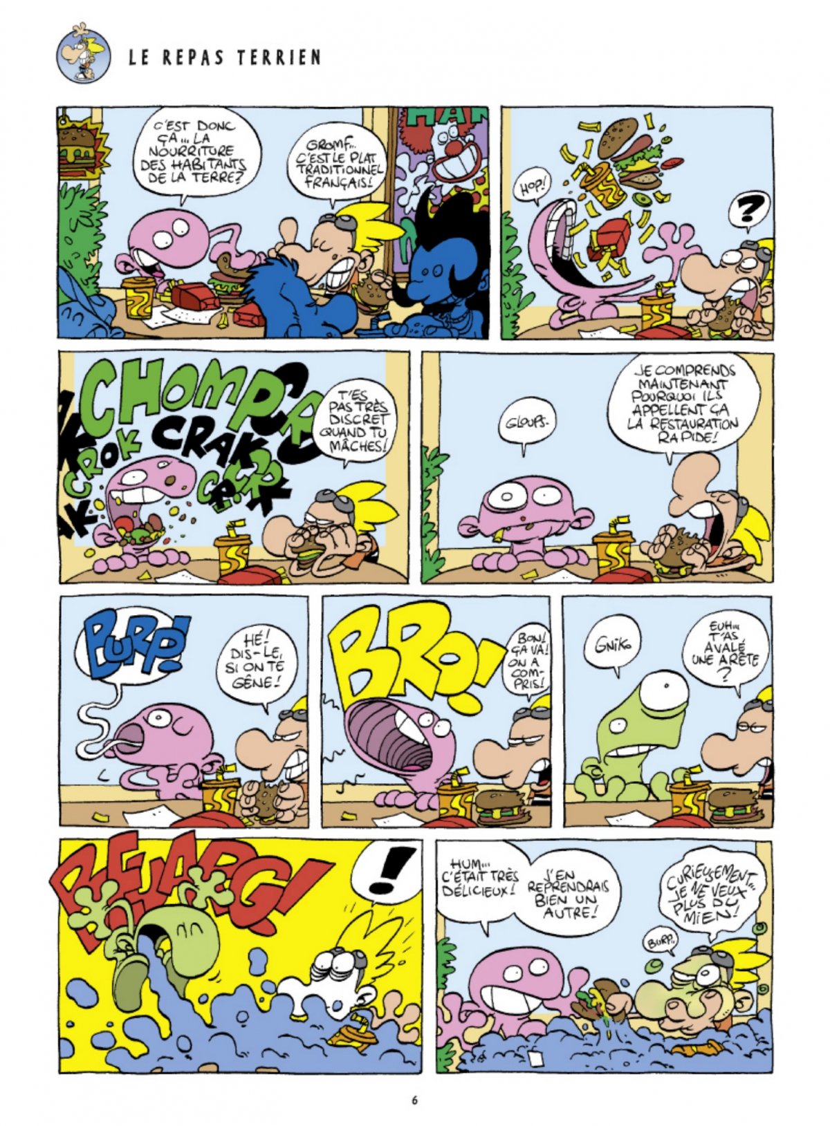Néon est un extra-terrestre. Mais de quelle planète vient-il ? Il n’est pas vert, ce n’est donc pas un Martien ; il n’a pas d’écailles, ce n’est donc pas un habitant de Béta 3 ; il n’a pas de tentacules non plus, ce n’est donc pas un Zorgbalien... Mais, finalement, quelle importance ? Néon n’est pas d’ici, un point c’est tout ! Samson, lui, est un petit garçon bien de chez nous. Il aime s’amuser, manger des bonbons et embêter les filles. Alors, pas étonnant que ces deux là s’entendent comme deux frères ! Néon a trouvé sur Terre l’hospitalité et les pizzas surgelées qui font défaut à sa planète. Quant à Samson, quelle classe d’aller à l’école en soucoupe volante et de désintégrer le prof de math avec un Velcrolaser ! Samson e t Néon, c’est l’anti-E.T. ! Un extra-terrestre franchement déjanté qui débarque chez un petit garçon plutôt dissipé... Ces deux compères nous offrent une avalanches de gags en une planche où Tébo, dont c’est le premier album, laisse aller son trait et son imagination en toute liberté. Un turboréacteur de joie de vivre et de fraîcheur !