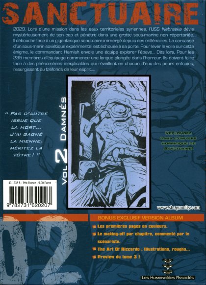 Damnés est le volume 2 de la série Sanctuaire Reminded par Stéphane Betbeder et Riccardo Crosa, paru en 2007. Selon nos informations, il n'en existe qu'une seule édition, publiée par Humanoïdes Associés (Les).