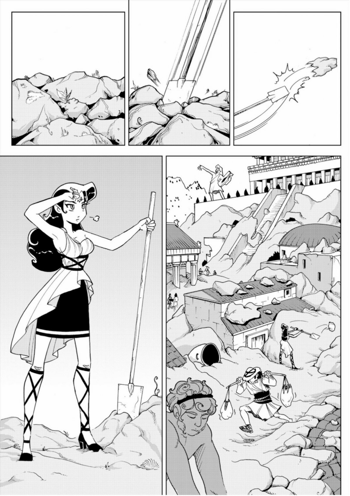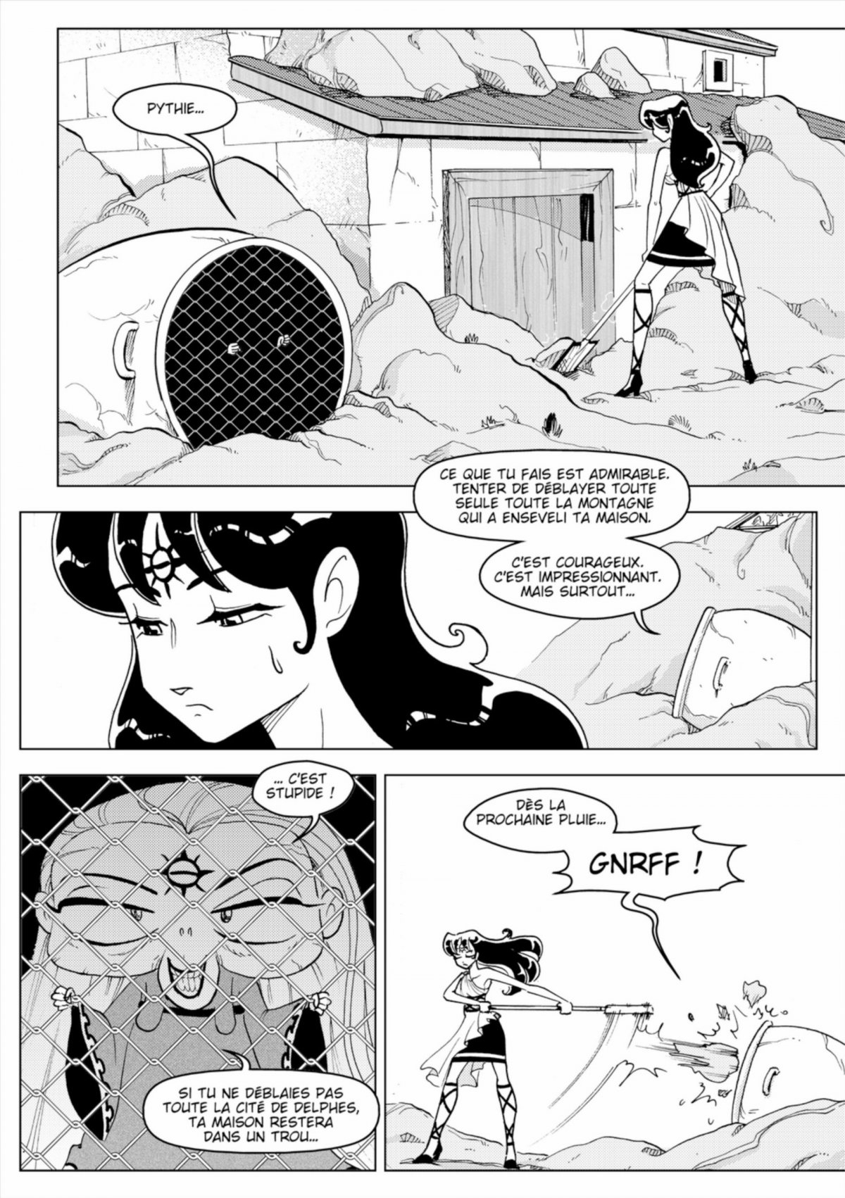 Pythie et les habitant essaient tant bien que mal de déblayer la cité de Delphes. Pendant ce temps, le Dieu Dionysos tente de se reconvertir en goûteur de vin. Complètement saoul, celui-ci englouti et détruit toute la réserve : pas sur que les Dieux puissent vivre parmi les hommes sans créer de nombreux problèmes.