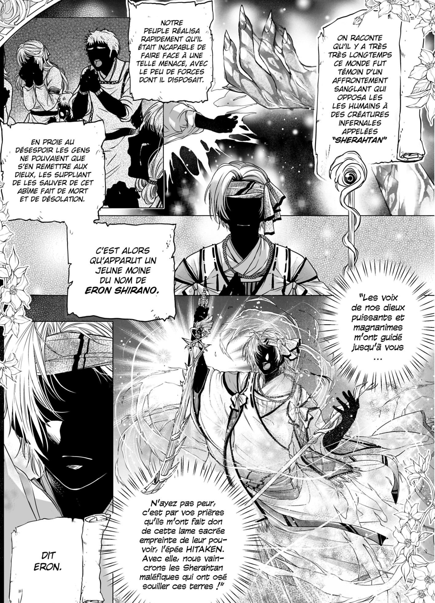 Dans le royaume de Nohmur, les humains vivent en paix depuis que les exorcistes ont repoussé les démons et scellé le passage menant à Ruhmon, le monde des démons. Deux sœurs, Lys et Rin, sont les héritières de l’illustre famille Shirano, le clan le plus puissant parmi les exorcistes chargés de veiller sur la barrière et de maintenir l’équilibre entre les deux monde grâce à l’épée des 100 âmes : Hitaken. Jusqu’au jour où l’épée sacrée semble réagir à un phénomène inconnu. On rapporte alors que des massacres ont lieu dans les villages voisins.