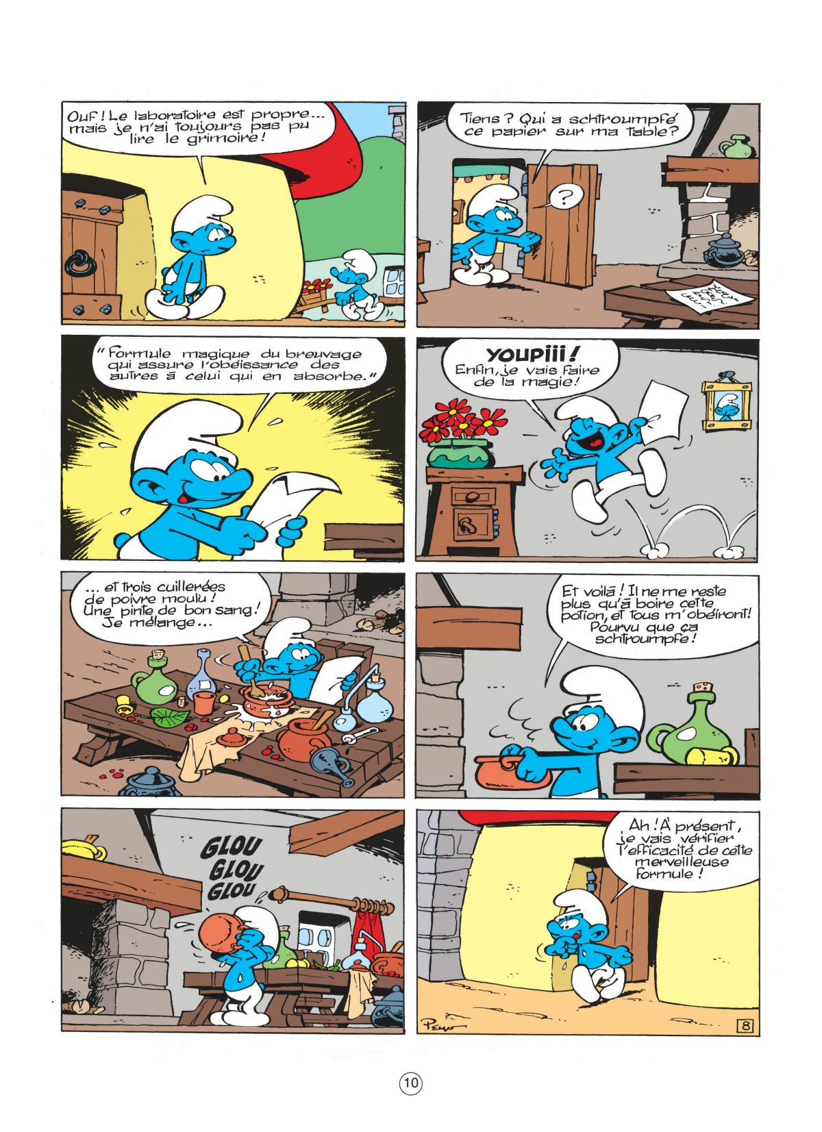 Un Schtroumpf s’essaie à la magie et à l’alchimie. Il essaye par tous les moyens de voler le grimoire du Grand Schtroumpf mais, n’y parvenant pas, il arrache une page d’un grimoire de Gargamel. Hélas, le but de la formule qu’il vole était sur la page suivante. L’apprenti Schtroumpf la réalise sans savoir à quoi elle va servir, et se transforme en monstre. Il décide de retourner chez Gargamel mais ce dernier le capture. Après avoir neutralisé le sorcier, les Schtroumpfs réussissent à rendre sa forme normale à leur compagnon.