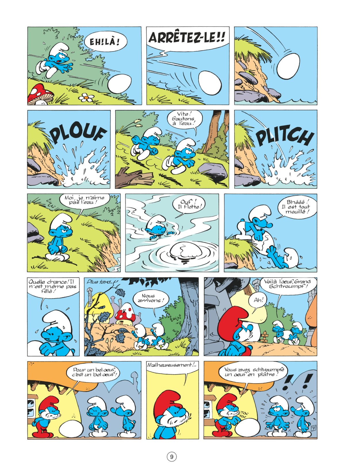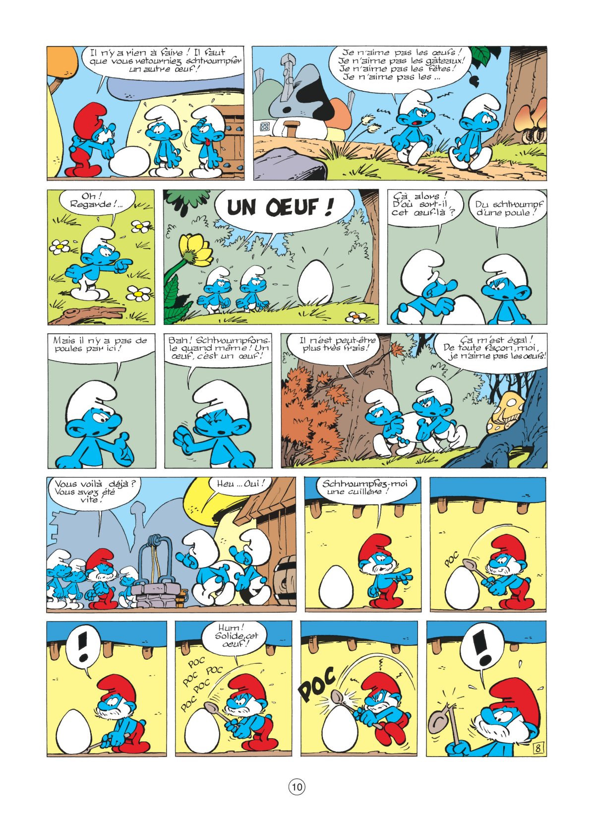 Alors que les schtroumpfs décident de faire un grand gâteau pour une fête, le Grand Schtroumpf décide d’envoyer le Schtroumpf grognon et un autre Schtroumpf pour rapporter un œuf. Après plusieurs péripéties et échecs, ils parviennent enfin à rapporter au village un œuf qui se révèle très dur et impossible à casser. Ils découvrent alors qu’il exauce un vœu dès qu’on lui donne un coup dessus. Alors que tous les schtroumpfs se précipitent pour exaucer des vœux, petit à petit, les désirs irraisonnés créent la pagaille dans le village des schtroumpfs : on y trouve, entre autres : un Schtroumpf géant, un Schtroumpf riche qui ne sait pas quoi faire de son argent, trois faux grands schtroumpfs, plusieurs schtroumpfs difformes ou bariolés, le Grand Schtroumpf qui a l’air d’un Schtroumpf normal, un Schtroumpf plus-grognon-du-tout, un Schtroumpf saucisse, un Schtroumpf parti au diable...