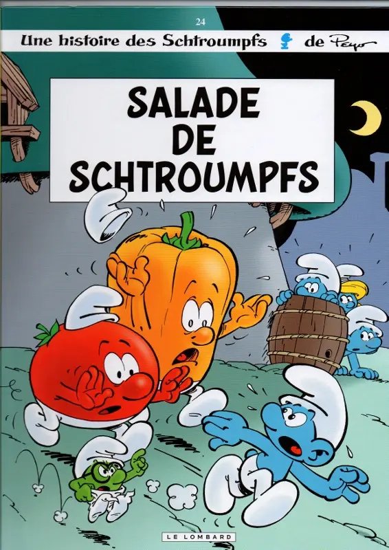 Salade de Schtroumpfs est le volume 24 de la série Schtroumpfs (Les) par Thierry Culliford et Jeroen De Coninck, paru en 2006. Selon nos informations, il en existe 7 éditions, dont la principale est éditée par Lombard (Le) en 2006.
