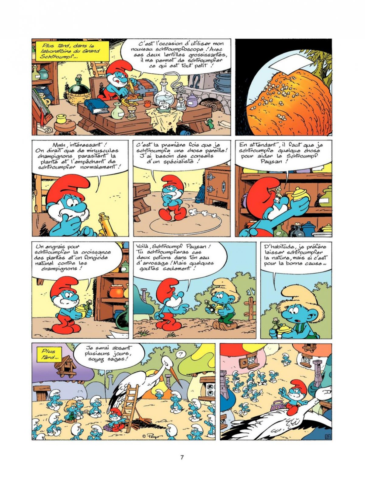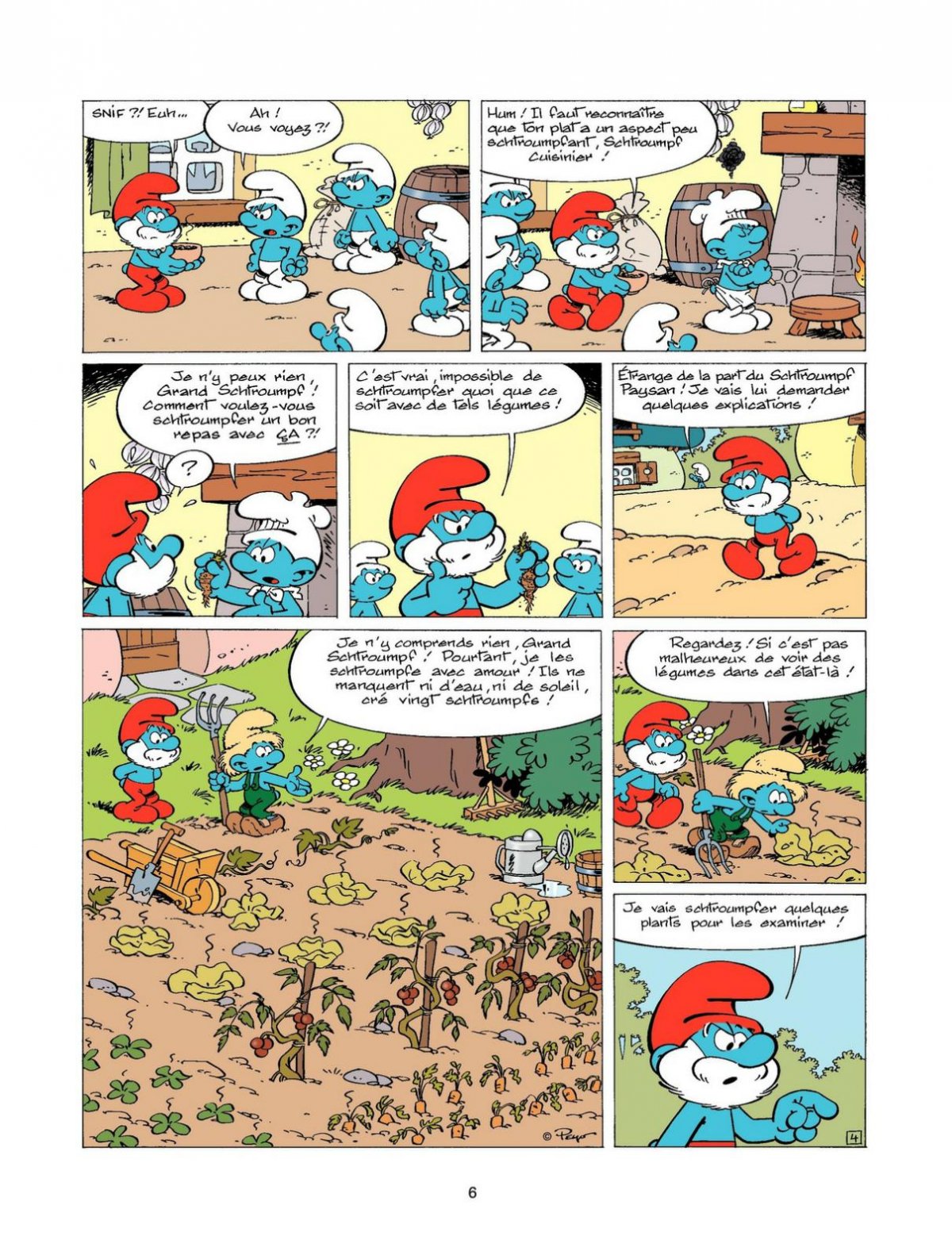 Les Schtroumpfs sont mécontents car la nourriture est infecte et les portions ridicules. "Le Schtroumpf Cuisinier veut nous affamer !" se plaignent-ils. Celui-ci s’en défend en expliquant que les légumes qui lui sont fournis par le Schtroumpf Paysan sont de qualité déplorable. Questionné par le Grand Schtroumpf, le Schtroumpf Paysan ne peut que lui montrer son potager qui est dans un triste état. Après analyse, le Grand Schtroumpf découvre que les légumes sont attaqués par un champignon microscopique qui lui est inconnu et qui empêche la croissance des légumes.